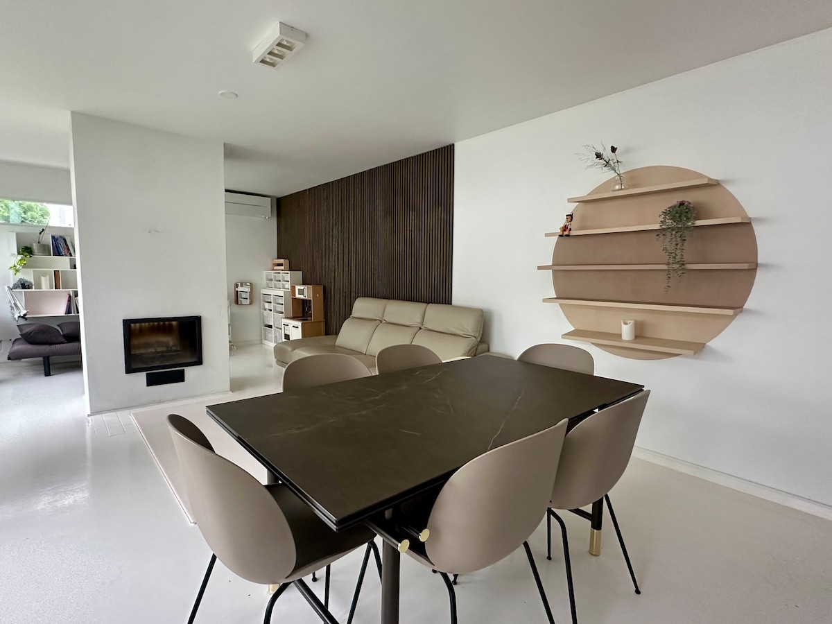Unwind and create in a tranquil designer haven. Our stylish 56m2 top floor apartment blends retro charm with modern comfort. Work, relax, or enjoy nature—it's all here. Chic Comfort Curated design and high quality furnishings. Serenity and style unite in this escape from the ordinary. Work & Relax Achieve productivity at the dedicated workspace. Unwind in comfy nooks, or do yoga in the covered balcony. Easy Living Designated parking spot, walking distance to metro, sea and supermarket.