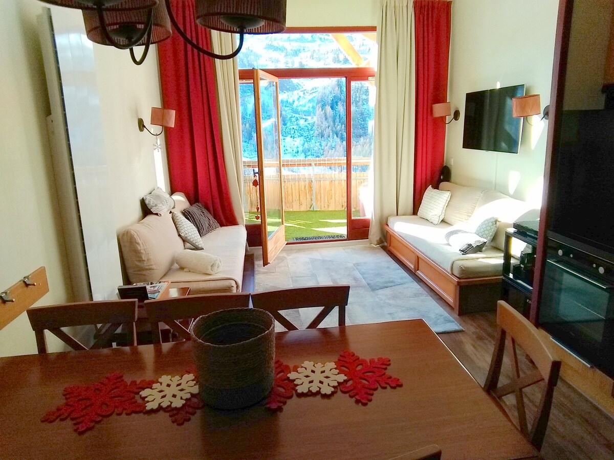 Studio tout équipé situé au 1er étage, parking gratuit au pied de la résidence. Vous trouverez une banquette lit en 180*190 cm et également un lit superposé en 70*190cm. La cuisine est équipée avec lave linge, sèche linge, lave vaisselle, plaque induction, micro-onde et réfrigérateur. Nombreux rangements. La salle de bain est entièrement rénovée avec baignoire et sèche serviette. Toilette séparé. La loggia vous permet de profiter de l'extérieur avec vue sur les montagnes.