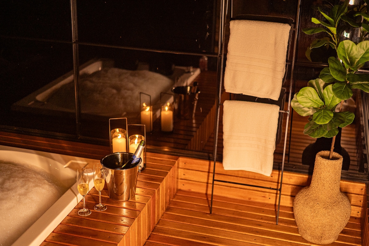 Détendez-vous dans cet espace calme et élégant, en pleine nature. Pendant la journée, profitez du chant des oiseaux et détendez-vous sur la pelouse ou dans le hamac. Profitez d'un moment de spa dans le sauna sec, puis plongez dans le bain extérieur pour un bain relaxant. La nuit, le spectacle est offert par le ciel le plus étoilé que vous verrez, en plus de la lueur des lucioles et de la symphonie des grillons ! Profitez de bons moments autour du feu, racontez des histoires et faites griller des guimauves. En bref, un endroit pour reposer le corps et l'esprit