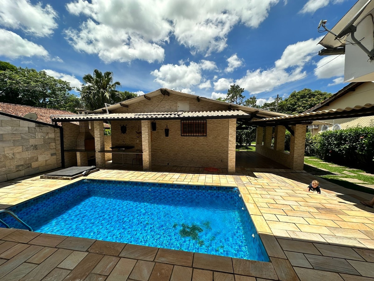 - NOUS NE LOUONS PAS POUR LES FÊTES OU LES EVENTOS- Maison pour 16 personnes dans une communauté fermée, entourée de beaux paysages. Terrain de 2 000m2, avec 6 chambres et 8 salles de bains. Piscine avec bar, barbecue et four à bois. Condominium avec des options de loisirs telles que court de tennis et aire de jeux pour les enfants, ainsi qu'un marché aux boîtes. Dans la copropriété vivent plusieurs chatons, qui sont pris en charge par les résidents, y compris nous, ils sont nourris dans un espace extérieur réservé de la maison.
