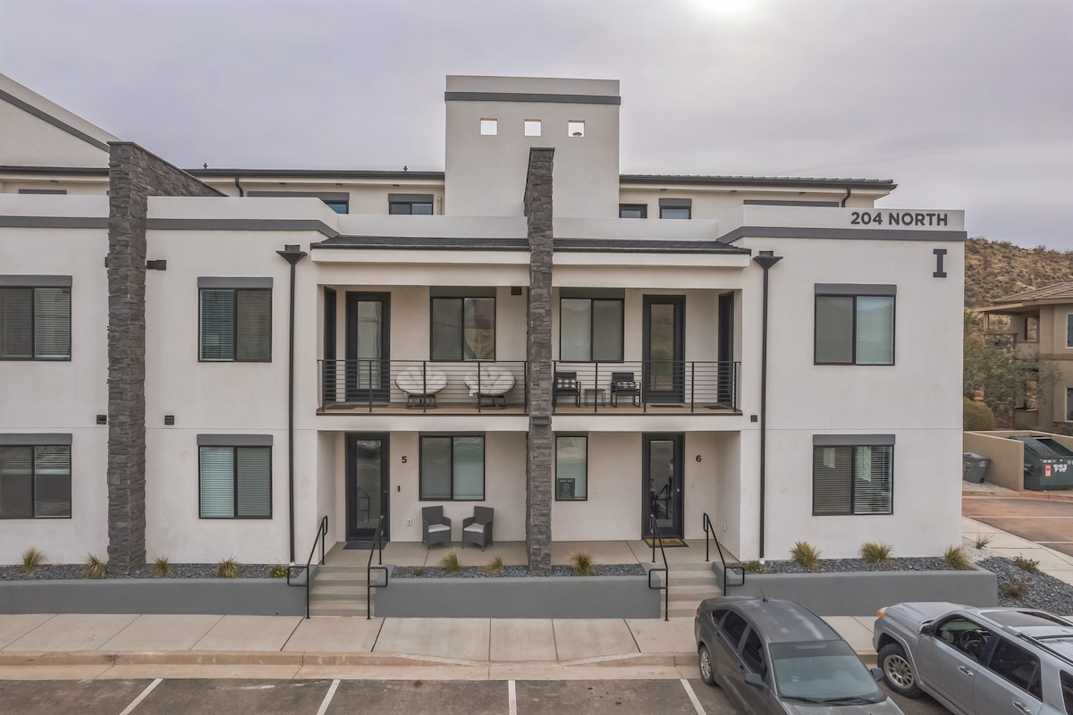 Don’t book a place out in the boonies! Next to Las Palmas. Book our modern corner main floor condo with no stairs and tons of windows! We are next to state parks, (Zion) Tuacahn Theatre, Walmart, Bear claw poppy trailhead for hiking/biking trails, 100mi UTV Riding and we are also next to The Grip Fitness - Ninja Warrior Obstacles and a Spa! Our condo is a ground unit so you have large patio that sits between palms! Walk out the back to a grass area! Fiber Wifi, Luxury Massive pool/tub Pickleball