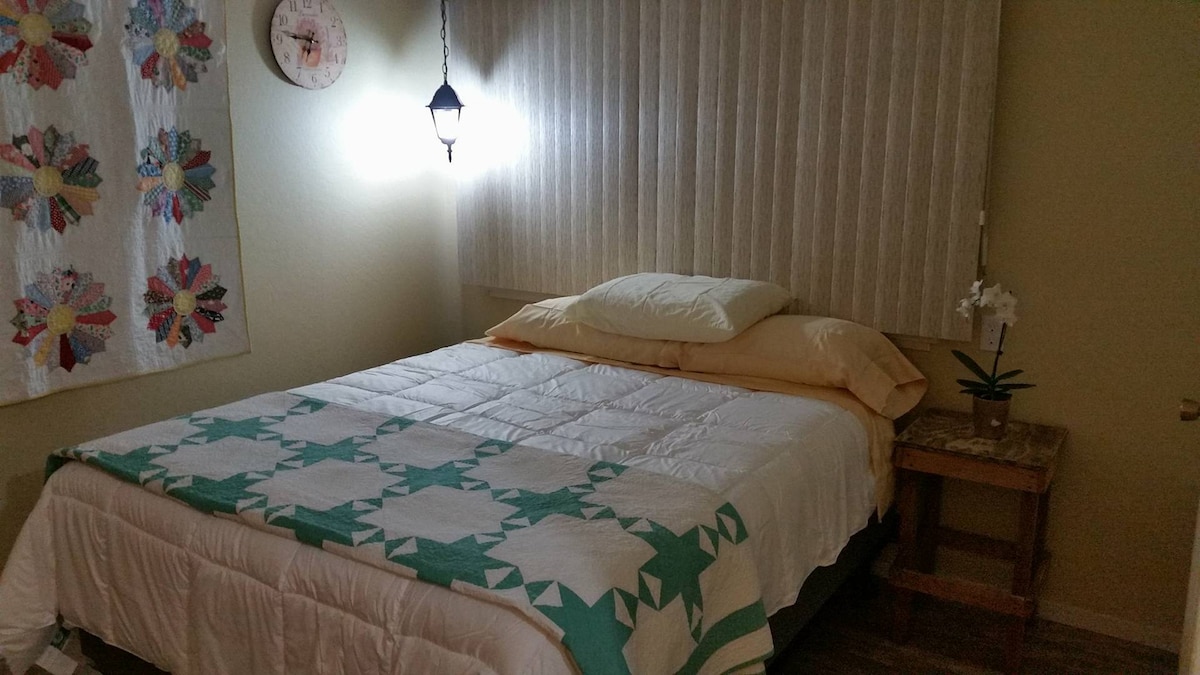Nestled on the border of the Shakespeare hamlet of Ashland, Oregon, is Kelly’s farm. Only four miles away from Ashland. Kelly’s farm has horses, goats, chickens, gardens, fruit and nut trees with views of Mt. Ashland’s seven-thousand feet high profile in its front and bucolic rolling hills in its back. Bring your dog! You have access to a large fenced in yard right from your private entrance and deck. ***Unfortunately we are not set up for children under 4 or kitty cats.