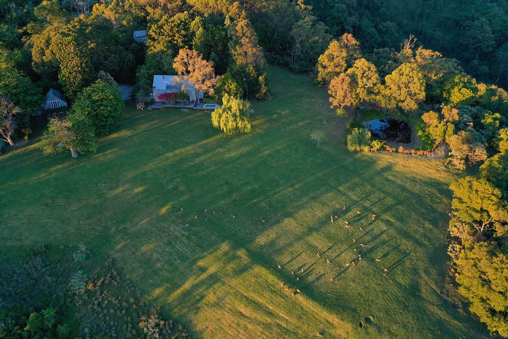 Offrez-vous une escapade inoubliable. Située dans la campagne verdoyante, à quelques minutes de l'historique Jamberoo, cette laiterie romantique transformée est parfaite pour les couples. Ouvrez les portes vitrées des espaces de vie spacieux et faites entrer l'extérieur. Cette retraite contemporaine décontractée et autonome est nichée dans la région laitière avec une vue sur un étang rempli de nénuphars, jusqu'à l'escarpement de Saddleback.