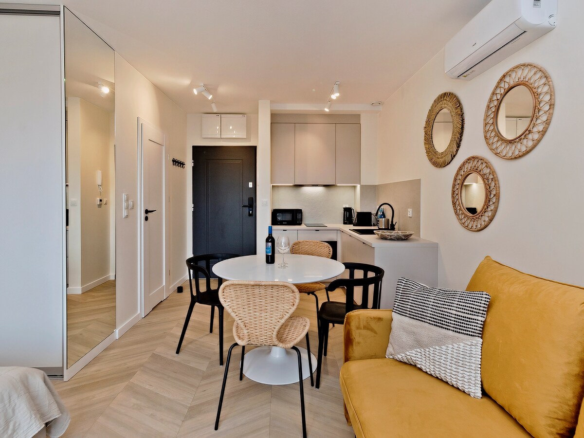Je vous invite dans un appartement élégant situé au cœur de la perle de la côte polonaise. Nos voyageurs trouveront toutes les commodités modernes comme un lave-vaisselle, une télévision connectée de 50pouces, une barre de son, un congélateur, etc. L'appartement est situé dans le centre de Jurata près de la plage et de la promenade. Les intérieurs climatisés vous permettent de reprendre votre souffle, et un patio couvert et verdoyant offrira des moments de détente. Pour les bébés, il est possible d'ajouter un lit pour bébé. J'ai hâte de vous rendre visite :)