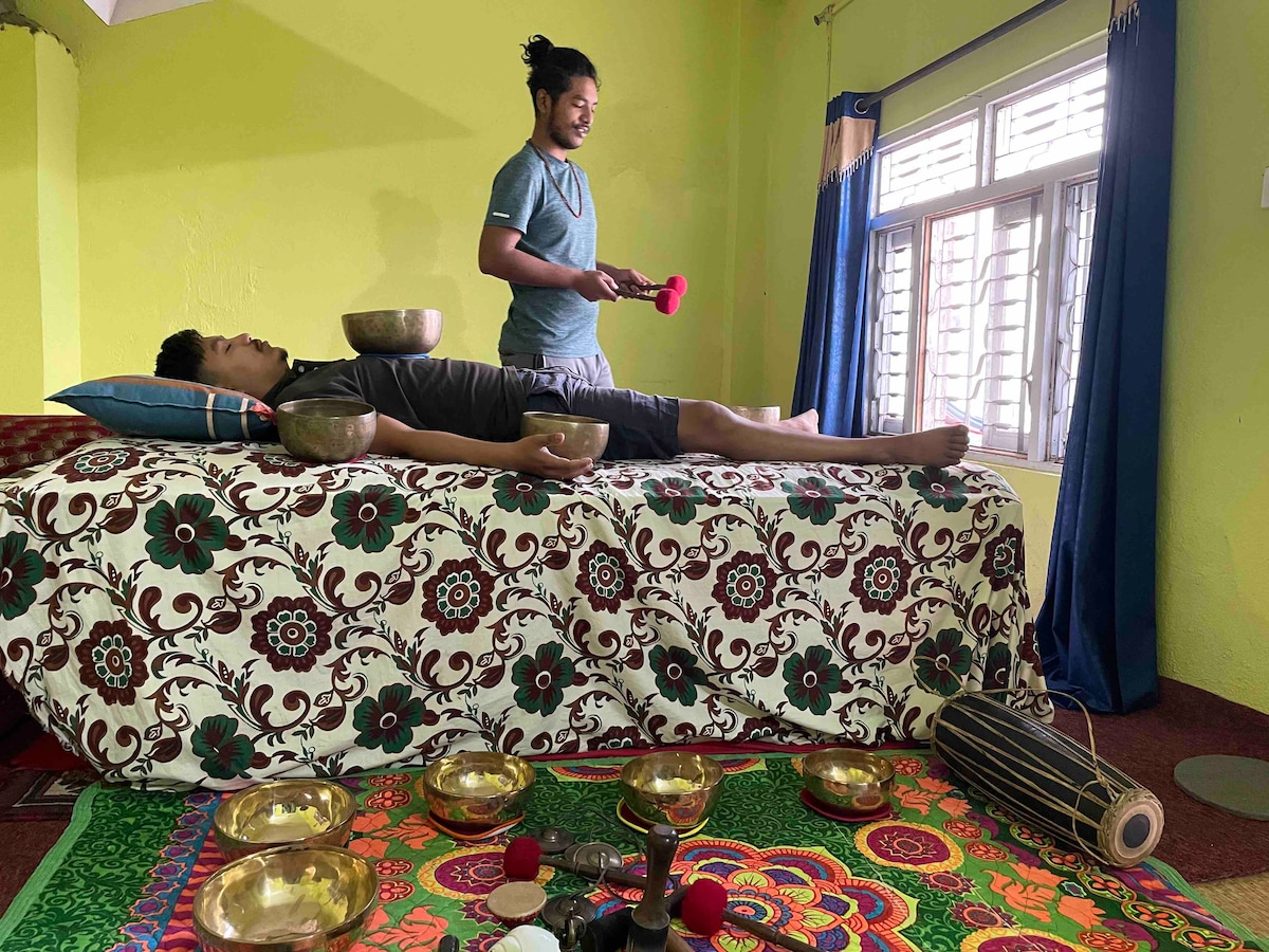 Our family-led retreat space is located in a peaceful village in the green hills of Dhading at 800m altitude. Surrounded by nature and birdsong, it’s a place to slow down and rest. Enjoy scenic walks, waterfalls, temples, and distant Himalayan views, including the Annapurna range. Our family has lived here for generations, growing organic food and using local medicinal plants. We also offer yoga, meditation, and sound healing. Rafting and zip-lining are available within driving distance.