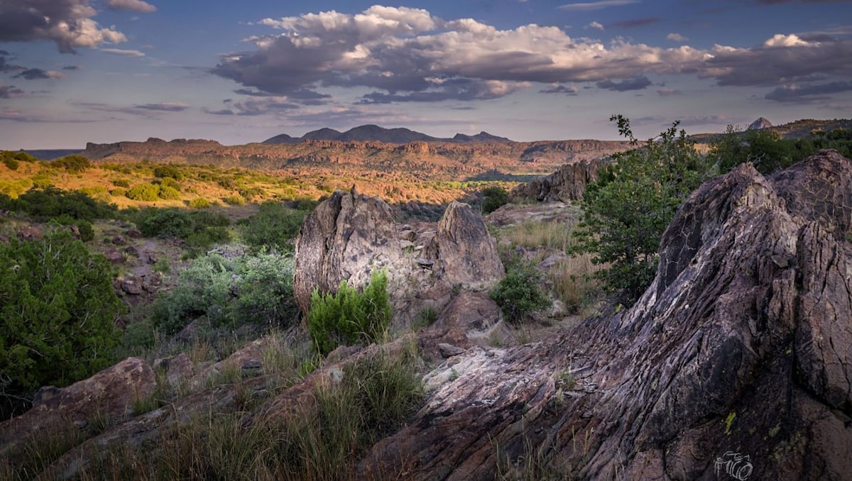Cette villa à flanc de colline se trouve au sommet de 36 acres de terrain intact à une altitude de 6 000 pieds ! Profitez d'un ciel sombre et de vues enchantées s'étendant sur plus de 100 miles avec 4 vraies saisons de temps extraordinaire. Des troupeaux de cerfs, des troupeaux de dindes et des oiseaux migrateurs errent librement dans tout le paysage. À 30 minutes en voiture de Marfa et Alpine à proximité, cette propriété est un véritable paradis isolé où des aventures de randonnée tout au long de l'année vous attendent ! REMARQUE : Internet satellite Starlink haut débit installé et opérationnel (c'est RAPIDE ! ! !)