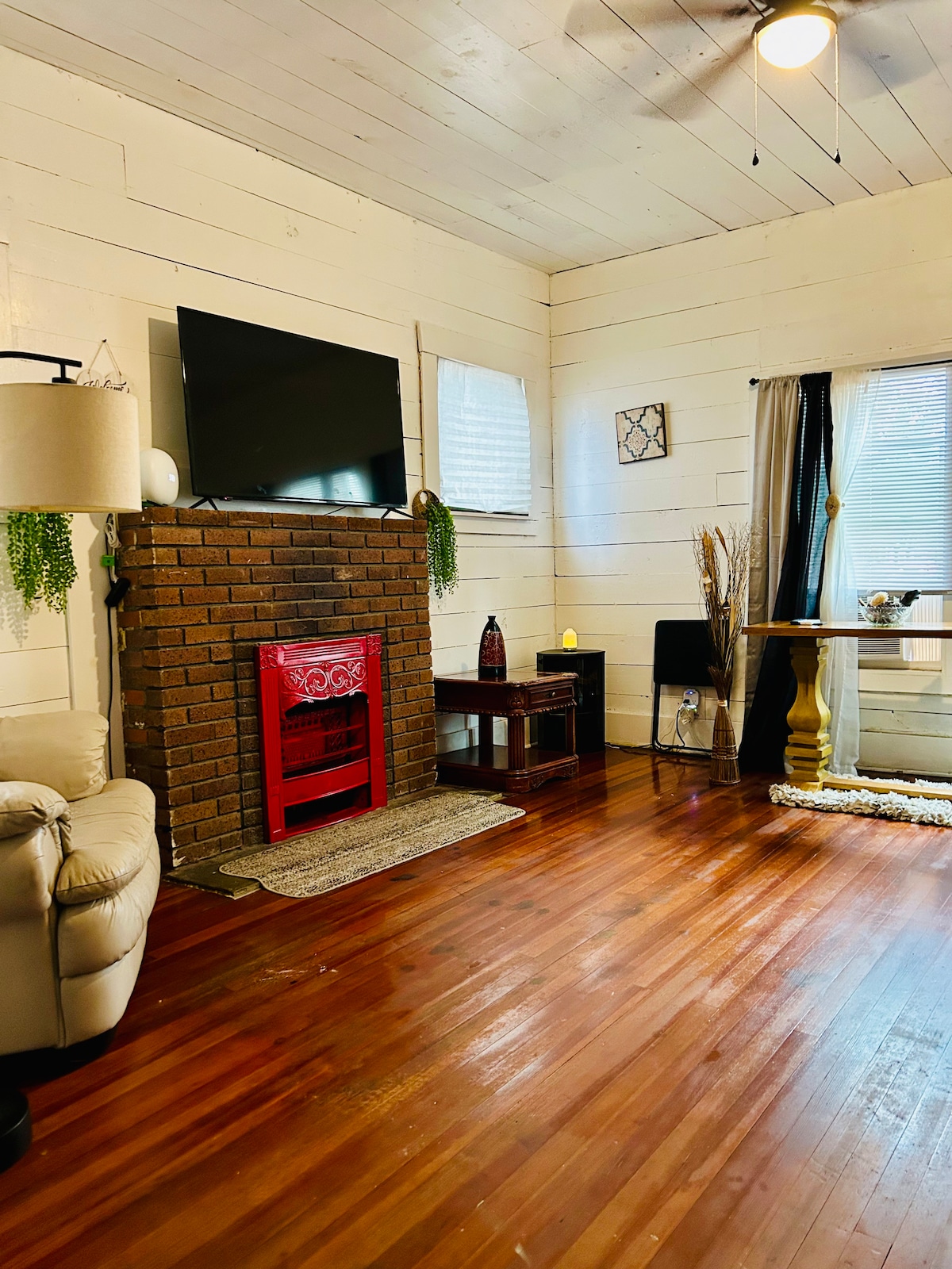 À l'origine, c'était une grange de cordonnier en activité dans les années 1930, puis entièrement rénovée et convertie en 2021. Maintenant, l'espace est moderne mais conserve toujours le caractère et le charme d'origine. Comprend la climatisation, un lit Queen Size très confortable, une cuisine entièrement fonctionnelle avec cuisinière, micro-ondes, petit four et un mini-réfrigérateur. Salle de bains avec de belles et grandes lumières de coiffeuse et douche bien éclairée. Si vous séjournez plus de 30 jours, nous offrons un service de blanchisserie gratuit.