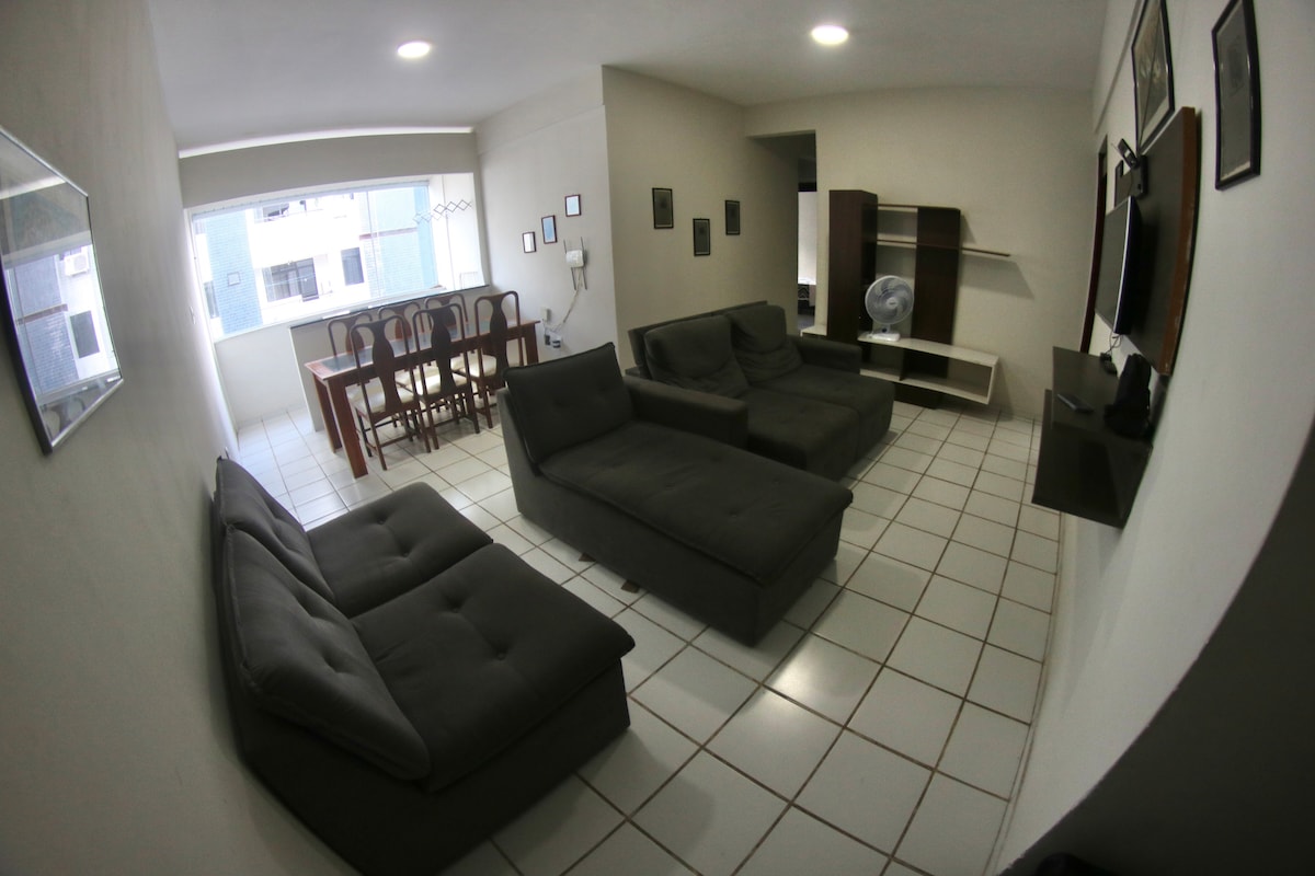 Appartement à quelques mètres de la plage., 120m de pur confort. Grande chambre très ventilée, à proximité des principaux sites touristiques de João Pessoa.Pharmacies,boulangerie, station-service,restaurants à proximité et centre commercial. Le balcon des photos est dans la chambre. Garagem, internet, 3 étages avec ascenseur.2 chambres climatisées !😊1 chambre avec ventilateur. Le 4e trimestre est réversible. Frais d'énergie facturés séparément 0,69 par kW