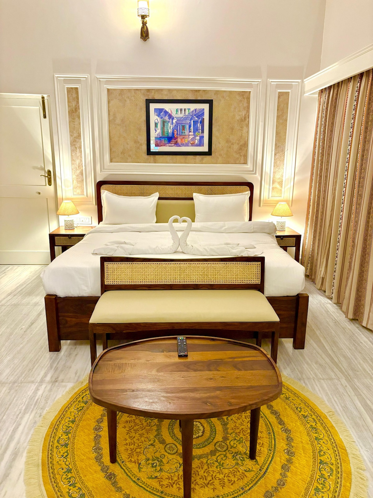 Découvrez The Royale Haveli By Madvik Retreat in Rajasthan ! Laissez-vous emporter par la magie du patrimoine et de la culture dorés de Jodhpur. Le haveli est un séjour de 3 chambres avec toutes les commodités et le confort modernes. Vous pouvez profiter du ciel ouvert près de la piscine ou vous détendre près de la zone du jardin à la voix des oiseaux dans la distance. Beaucoup d'oiseaux et de paons ont été repérés sur la terrasse et le jardin de ce haveli. Réservez votre séjour et gâtez-vous avec la délicieuse cuisine et l'hospitalité incroyable de notre personnel