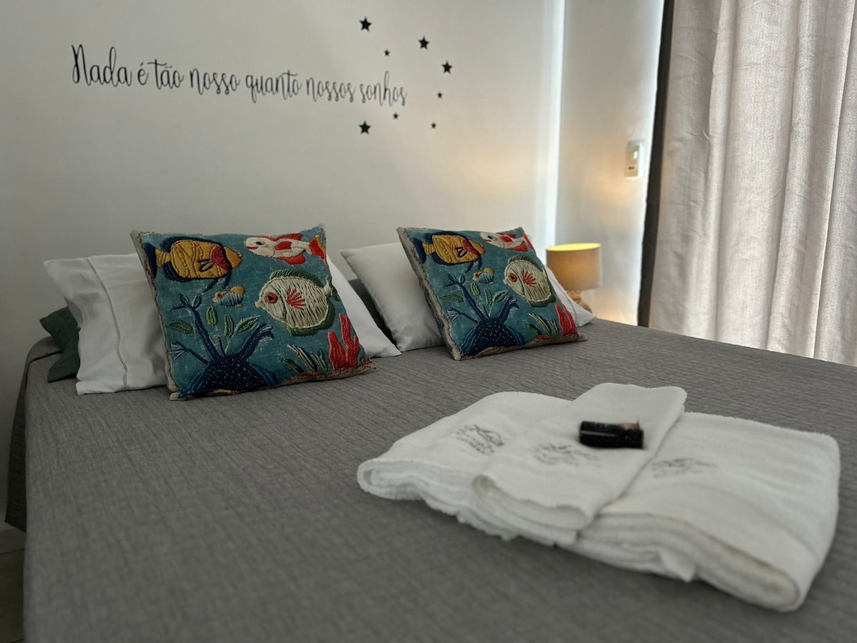 Estiloso Studio temático tipo Suf Lifestyle! Super refinado, confortável e luxuoso, ideal para pessoas com estilo buscando conforto e praticidade. Cama Queen linha Benvenutti, super confortável. TV Smart 43" com streaming. Wi-fi potente. Cozinha completa equipara com panelas e utensílios Tramontina, pratos Porto Brasil, copos e taças de vinho. Cafeteira e liquidificador. Fornecemos café em pó, açúcar e sal, além de sabonetes e xampú. Materiais de limpeza também serão fornecidos.