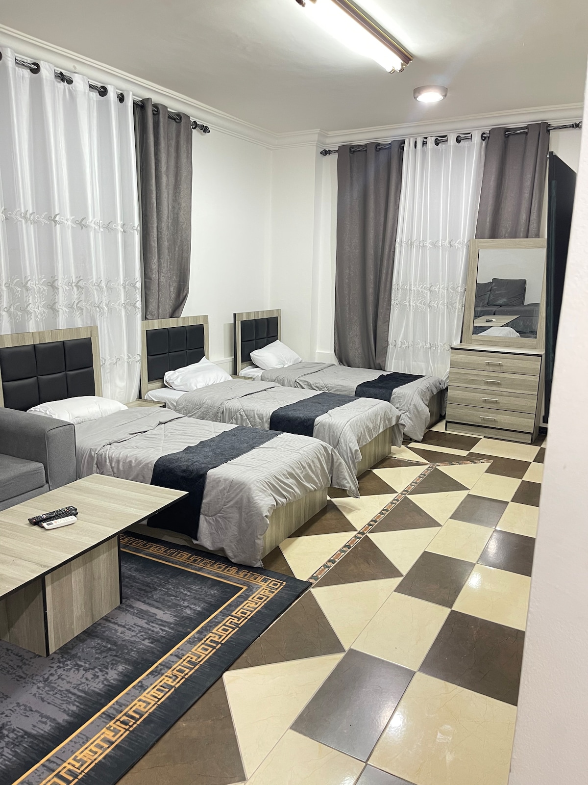 Spacious apartment which is ideal for business and Leisure travelers, location in heart of Amman. US and UK embassy is on minutes of dive away. Surrounding by restaurants, shopping mall and night life. Large floor plan with stylish furnished, fully equipped Kitchenette makes guest feel like home. Complimentary toiletries and a pack of groceries provided upon your arrival.
