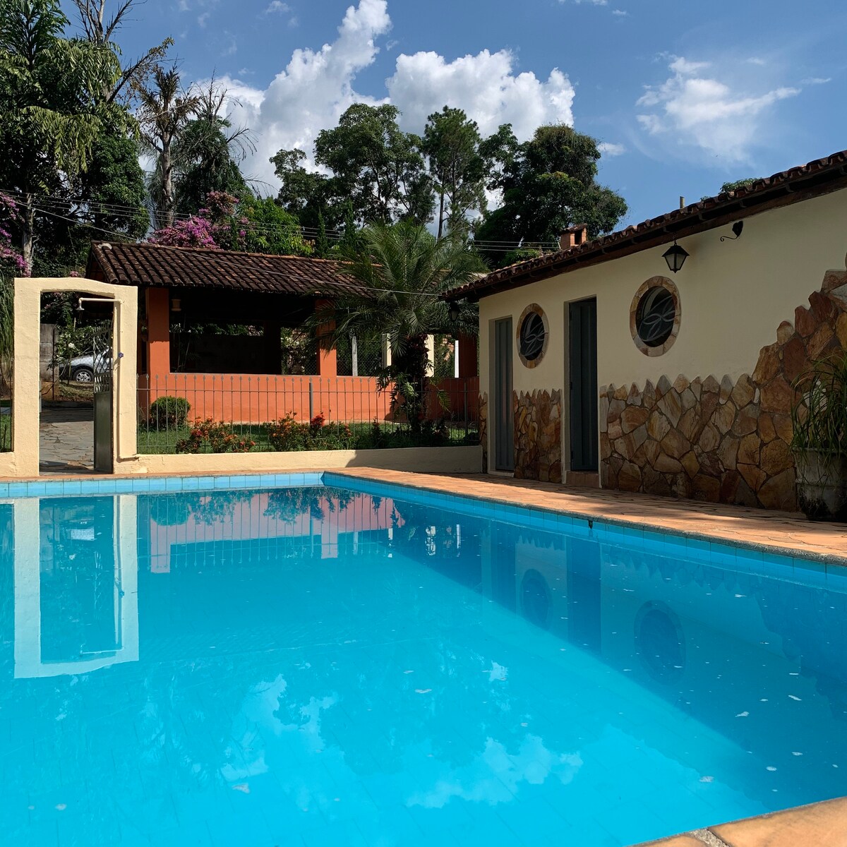 Excellente ferme familiale avec un grand espace de loisirs et un beau paysage. La maison dispose d'une cuisine équipée, d'une salle à manger, d'un salon, de 4 chambres, dont une suite, d'une salle de bain sociale, d'une salle de bain dans la zone de la piscine, de 02 balcons, dont un avec barbecue et congélateur. Grande piscine pour adultes, terrain de football. *À côté de Divine Eventos Heure d'arrivée - 18h Heure de départ - 18h