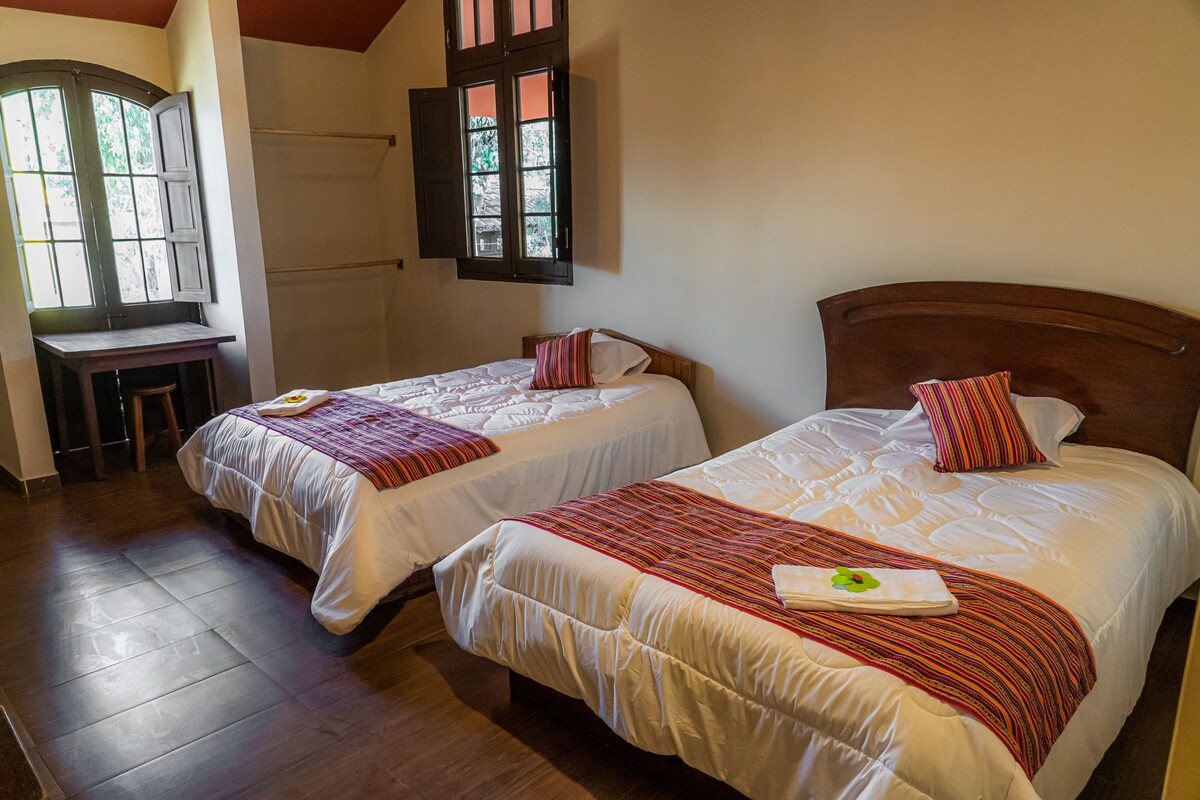 Notre maison appelée Cuyay Wasi, est faite d'adobe et de bois, est idéale pour une famille qui aime la vie à la campagne. Il est à 15 minutes de la ville de Huancayo entourée d'arbres indigènes et d'un jardin familial, dans la communauté agricole de Vilcacoto. La cuisine et la salle à manger sont dans une atmosphère spacieuse. Depuis le salon et le balcon, vous pouvez admirer le magnifique coucher de soleil. Nous serions ravis d'accueillir des gens de cultures différentes qui apprécient la vie riche de la vallée de Mantaro.