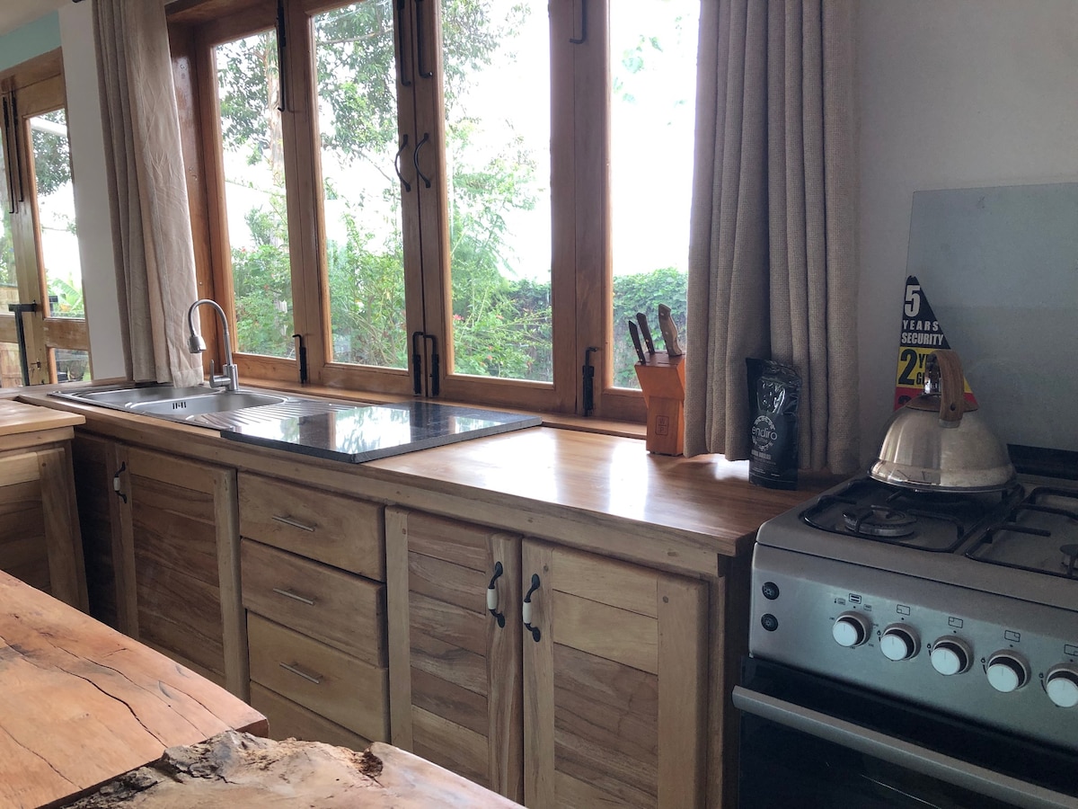 Respirez l'air frais, écoutez les oiseaux, admirez les lacs ou les turacos bleus depuis la terrasse de votre maison en bois sur pilotis. Allumez un feu de camp, déroulez le tapis de yoga, admirez la vue sur les deux lacs, les montagnes Rwenzori et la forêt et dégustez des ananas, des mangues ou des avocats de mon jardin. Et oui, c'est hors réseau, mais ne paniquez pas, il y a de l'énergie solaire pour recharger vos appareils électroniques. Demandez notre forfait escapade romantique avec massage, dîner aux chandelles, SUP et plus encore 🫶🏾