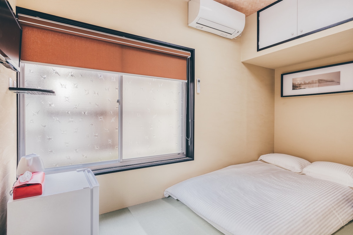 [Chambre double pour 2 adultes] Lit double 143 cm de large × 208 cm × 1 L'emplacement et l'entrée parfaits sont équipés de caméras de sécurité et de fonctions de verrouillage automatique, afin que vous puissiez profiter de la tranquillité d'esprit et de la sécurité, même avec des femmes et des enfants. E-2 Vous pouvez facilement vous rendre n'importe où dans ce logement. Il dispose d'un ascenseur, afin que vous puissiez entrer et sortir vos bagages comme n'importe quel autre hôtel. Nous proposons 3 types de chambres : double, lits jumeaux et queen size. Juin 2025 ~ ouvert Il y a une cuisine, des toilettes et une salle de bain séparées, pas d'espace commun, un usage complètement privé, vous pouvez donc rester confortablement ! À 6 min à pied de la gare JR Shinjuku ! (sortie est) À 2 minutes à pied de la gare de Shinjuku Sanchome ! (Sortie E1) Un appartement à Shinjuku Golden Gai où vous pourrez découvrir l'ancienne atmosphère japonaise. À côté de la source chaude naturelle Telmer-yu (ouverte 24h/24).