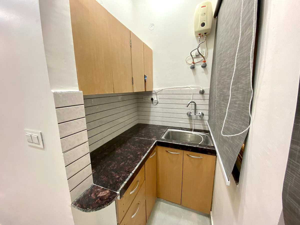 charming 2 Bhk Suite Apartment with central courtyard & terrace at front to relax in sunny winters afternoons & unwind at evenings, comes with fully equipped kitchen with basic utensils. The place is full of light & open space, both the rooms overlooks the central courtyard and are attached with dressing & Washroom equipped with hot & cold shower, cupboards. We have two furry 🐶 to welcome you.