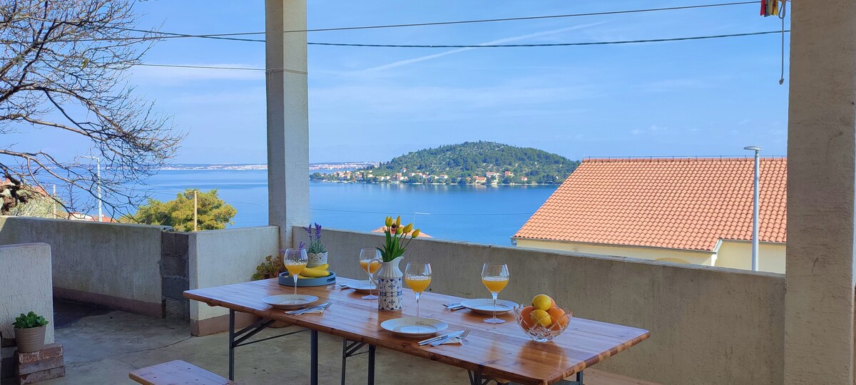 Cet appartement avec une grande tarrace est situé à seulement 300 mètres de la plage. De Tarrace offre une belle vue sur la ville de Kali et l'ensemble du canal de Zadar. L'appartement peut accueillir jusqu'à 4 personnes (enfants et bébés inclus), il dispose d'un lit double et d'un canapé extensible.