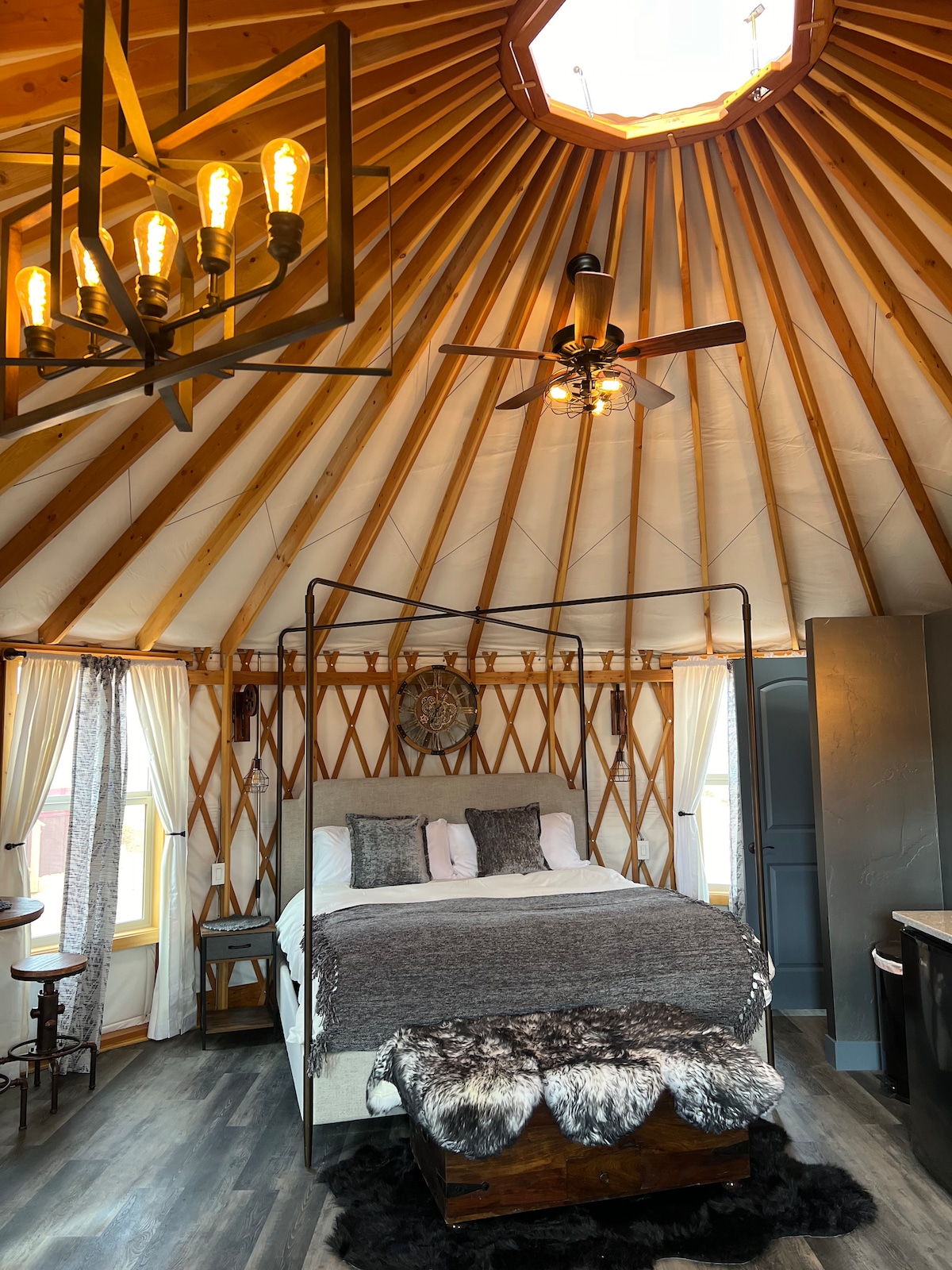Retraite luxueuse, entièrement climatisée et chauffée, idéalement située à proximité de toutes les aventures du lac Powell. À quelques minutes du lac et à côté de la station exclusive Under Canvas. Entrez dans l'élégance raffinée de la yourte Clockwork Oasis, un sanctuaire haut de gamme de 450 pieds carrés inspiré du glamour industriel des années 1920. Des accents vintage réfléchis évoquent un esprit d'innovation et de sophistication. Profitez du confort. Lit moelleux, douche de style spa.