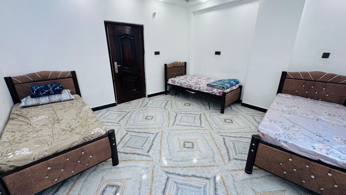 Tout nouveau appartement indépendant à louer disponible à Karbala. - Pour 4 à 6 personnes - Cuisine et salle de bain séparées, PAS de partage avec qui que ce soit - 10 minutes à pied du sanctuaire (2 minutes à pied du premier point de contrôle) - Réceptionniste 24h/24 et 7j/7 en bas - Appartement boutique - Panneaux solaires 24/7 pour l'électricité - Appartement au 1er étage - 2 lits et 4 matelas disponibles Emplacement privilégié à côté de la route principale où tous les TukTuks et taxis sont disponibles et des magasins 24h/24 et 7j/7 sont disponibles à quelques pas.
