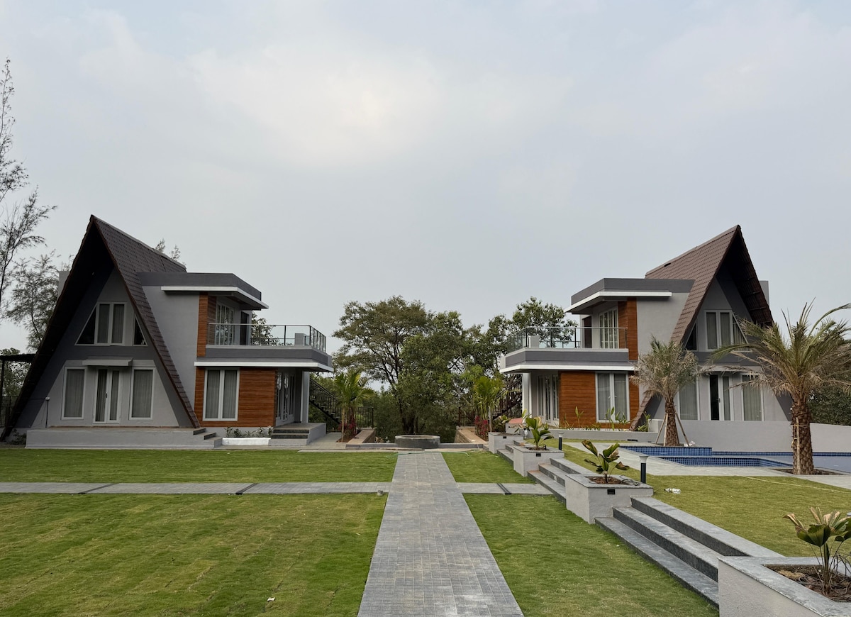 Évadez-vous dans notre villa privée au bord de la rivière et notre salle de verre à Karjat, où la rivière est votre jardin. Réveillez-vous avec une vue imprenable depuis notre salle de verre unique séparée de la villa rustique, perchée au-dessus de l'eau. Avec un accès direct à la rivière, vous pourrez nager, vous détendre et profiter de la sérénité de la nature. Avec nos 3 chambres à coucher avec salles de bains attenantes, ce refuge privé offre une escapade sereine à ceux qui cherchent à s'immerger dans la beauté de la nature. Chambre en verre : 2 à 4 personnes Villa d'accueil : 8 voyageurs