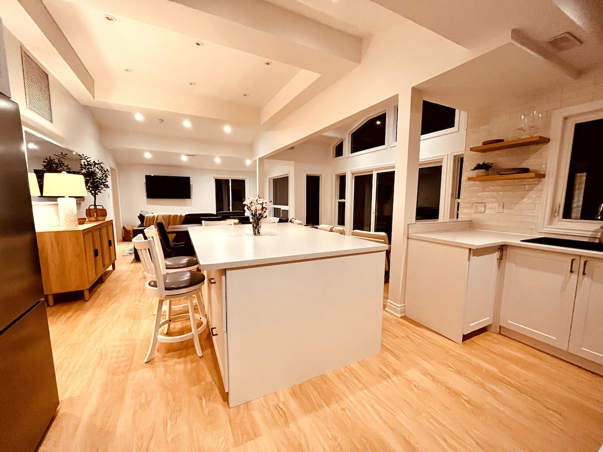Escape to The Timber Oasis. A custom-built timber-frame retreat with floor-to-ceiling windows on 4 private acres of valley views. The Highlights: 🌲 5 mins to Lake Clear 🛁 Private covered Jacuzzi® Hot Tub 🔥 Cozy wood stove + outdoor fire pit 🛌 Sleeps 6: 2 BRs w/ Queen-over-Queen bunks 🐾 Pet Friendly 🛜 100+ Mbps WiFi Enjoy a gourmet kitchen, in-floor heat, and a massive deck. Perfect for families, friends, or a quiet workation. Handcrafted luxury meets nature. Book your stay!