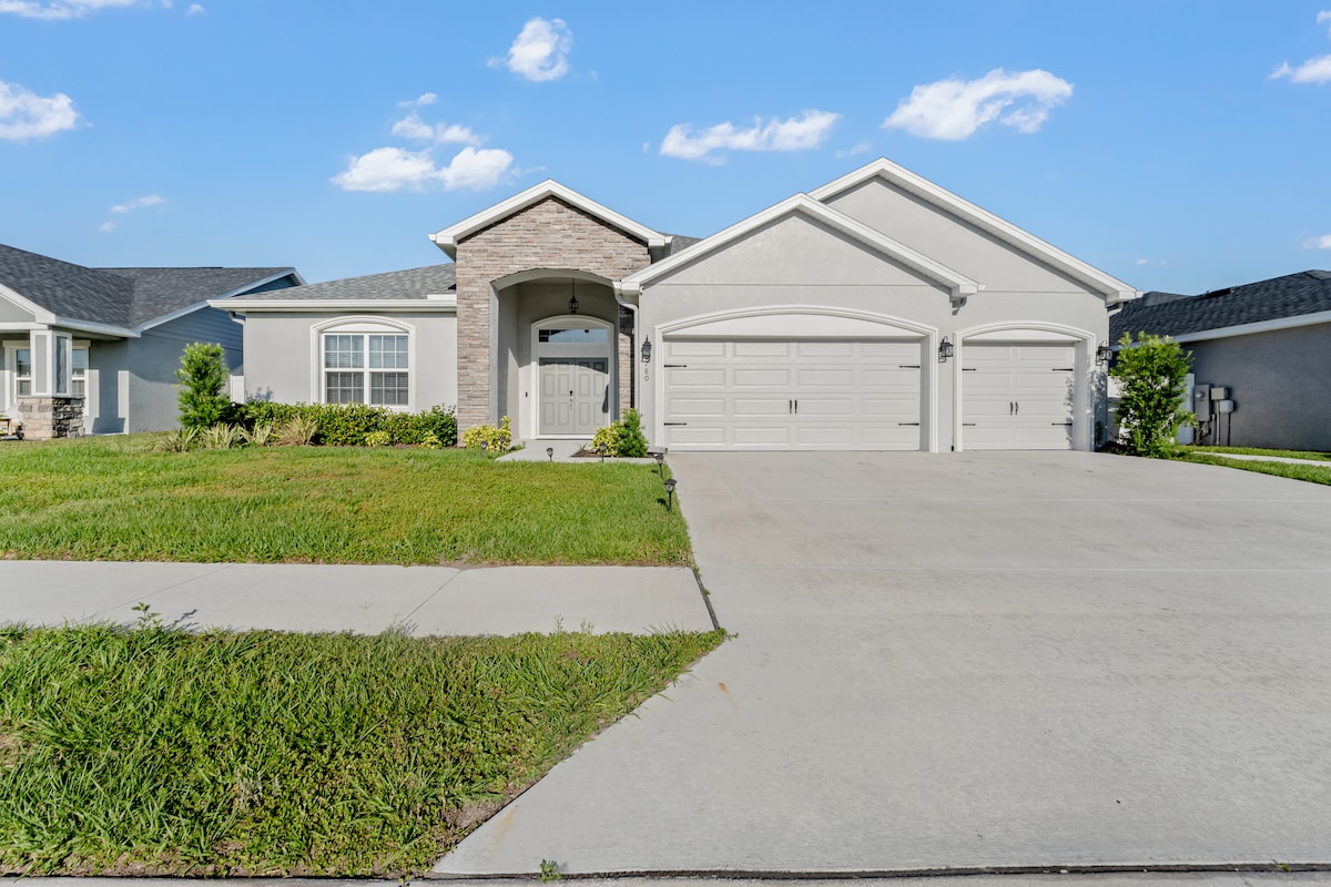 Propriété 1+ Acre avec 4 chambres à coucher et 3 salles de bain complètes dont une suite de belle-mère. C'est parfait pour votre prochaine escapade, y compris le wifi haut débit, deux téléviseurs 4K 55pouces avec Nexflix et tout ce dont vous avez besoin pour vos vacances ! Si vous souhaitez explorer, le logement est idéalement situé avec un accès rapide aux parcs, aux collèges, aux aéroports et aux parcs d'attractions !