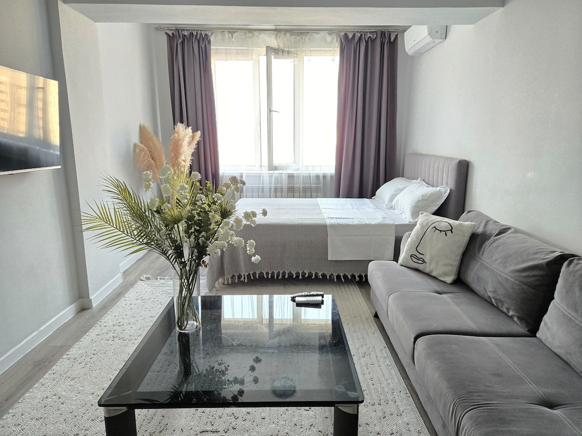 Appartements modernes et confortables à Astana. Nous sommes heureux de vous inviter à passer votre temps confortablement et à vous sentir comme chez vous. Nous avons essayé de maintenir le même style dans tous les appartements, ce qui crée un certain confort pour nos invités. Dans l'appartement, vous trouverez tout ce dont vous avez besoin pour cuisiner, Internet haut débit (WI FI), télévision CONNECTÉE