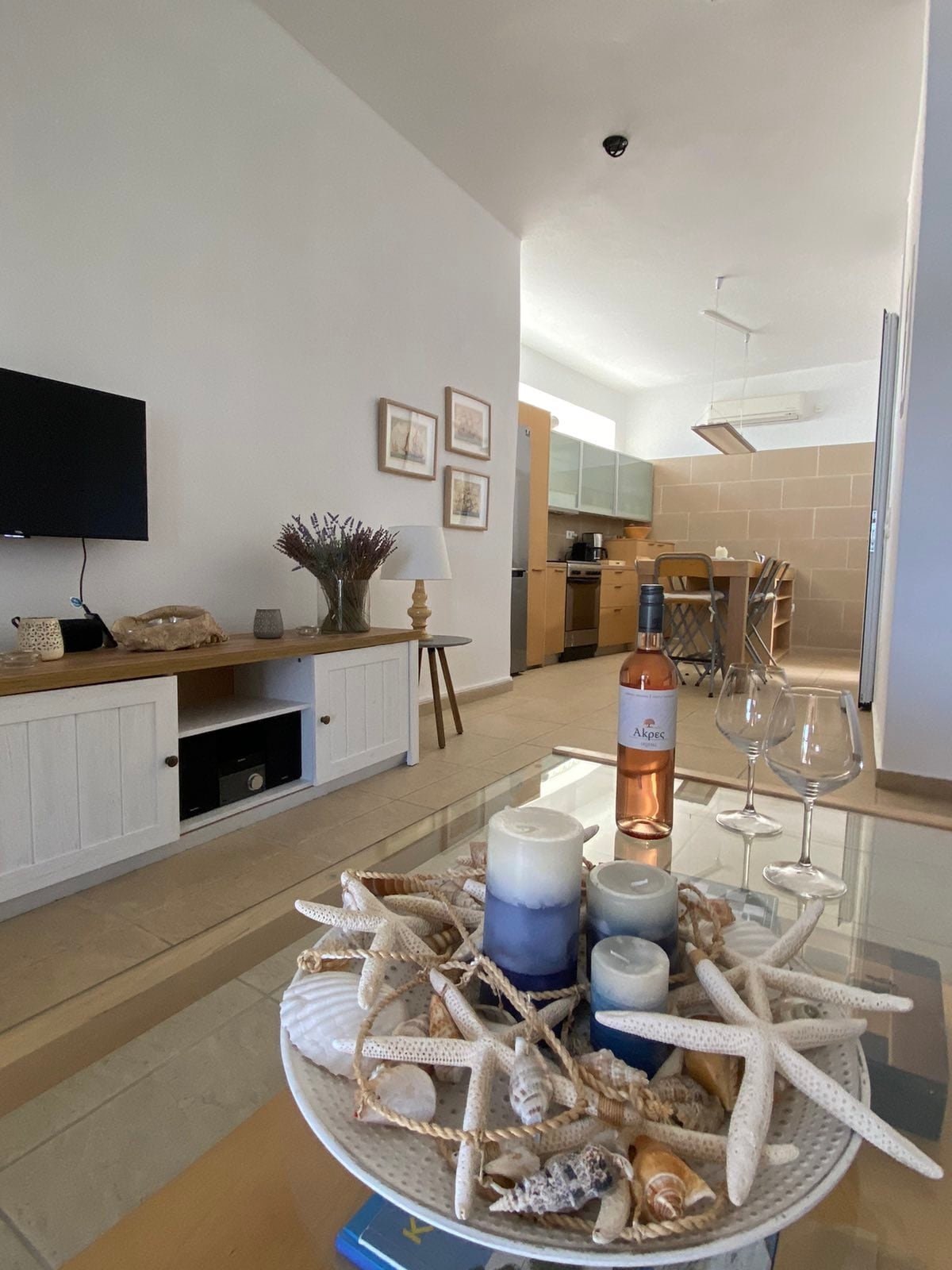 Un studio confortable de style boutique idéal pour les longs séjours sur l'île ; avec port, arrêt de bus, plage, restaurants et commerces à quelques minutes à pied ! Détendez-vous, remplissez vos piles et profitez de l'équilibre parfait entre un cadre moderne et confortable et l'hospitalité traditionnelle de notre maison ! La maison peut accueillir strictement deux personnes