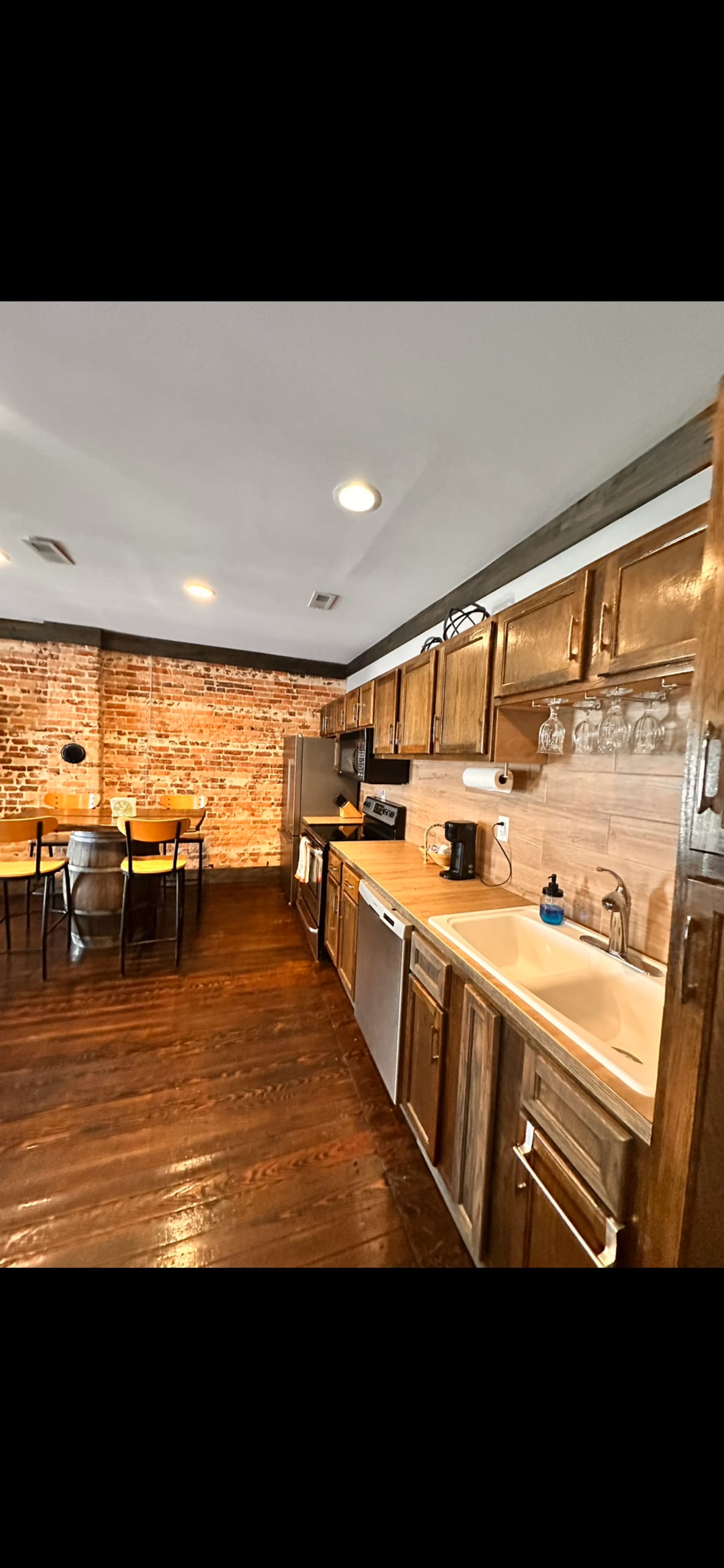 The Bricks est un loft de luxe moderne situé dans le plus ancien bâtiment de Blackstone. Les briques apparentes ont été posées en 1893. Donne sur Main St. Profitez d'une cuisine complète, de beaux planchers en bois d'origine, d'une table à manger en dalle, d'une grande douche de luxe pour deux. Lits Queen Size confortables, draps doux. Grande télévision connectée avec vos applications préférées et WiFi rapide gratuit. Café, thé et articles de toilette de luxe. En face se trouve un gastropub, The Brewhouse, de la bonne nourriture, une ambiance amusante et de la bonne bière. À distance de marche des restaurants, des commerces et à proximité de Ft Barfoot.