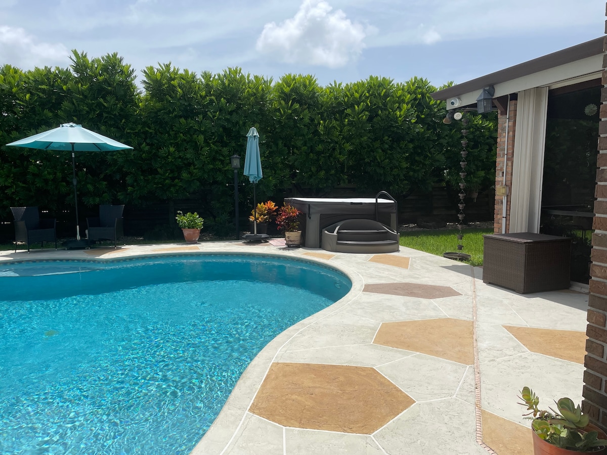 Appartement privé - 1 chambre avec lit King Size, 1 salle de bain complète, salon et coin repas séparés. Cuisine entièrement équipée. Parking gratuit, belle oasis avec piscine d'eau salée, jacuzzi et patio. Gazebo avec foyer, barbecue, 2 téléviseurs, Wi-Fi gratuit. Ce n'est PAS un endroit pour faire la fête, mais un endroit pour se détendre dans la piscine, le jacuzzi ou lors de dîners relaxants à la maison après avoir visité les sites de Miami. Situé dans un quartier calme, à 2 miles des commerces et des restaurants. C'est votre maison de vacances loin de chez vous !