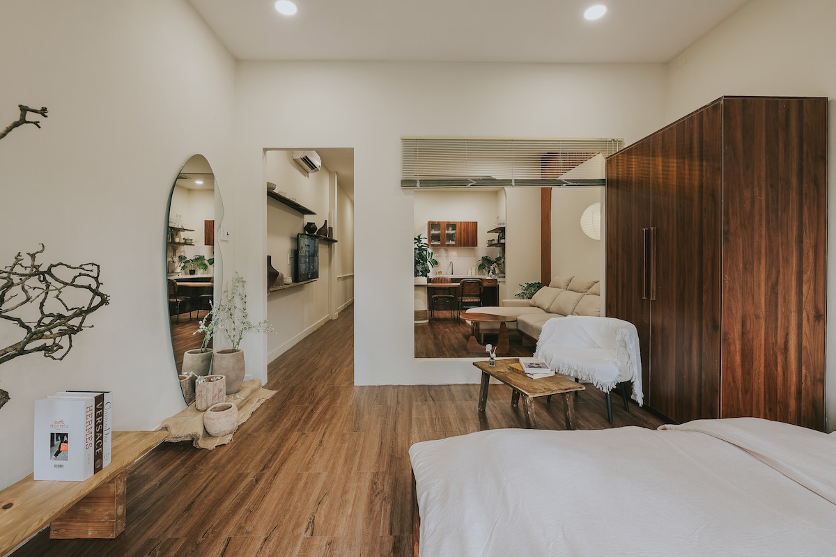 Established in 2023, We offer High Quality Short and Long Let Serviced Apartments located right on a busy street with famous cafes, restaurants, Circle K and convenient stores near by and just a few minutes walk to Bui Vien walking street, Tao Dan Park. Cost-effective compared to hotels, we provide 1 BR serviced apartments with privacy, modern style, kitchen, balcony, soundproof door & windows, desk space to work, rooftop garden, elevator, regular cleaning and the comforts of a “Home-from-Home”.