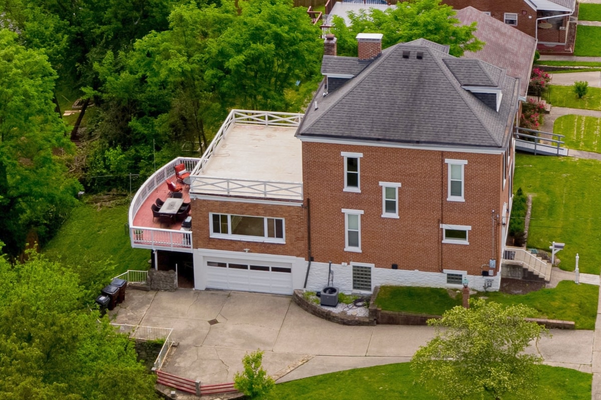 Maison de ville élégante de 3 chambres entièrement rénovée pouvant accueillir 8 personnes. Situé à 2 minutes du centre-ville de Cincinnati et Village de Mainstrasse. À moins de 5-10 minutes de la plupart des principales attractions. À 10 minutes de l'aéroport et à 35 minutes de Ark Encounter. Marchez jusqu'aux stades. Une cuisine entièrement équipée, une cafetière et une cafetière, une terrasse avec vue sur la ville, un porche arrière à moustiquaire fermé Allée pour le stationnement hors de la rue et stationnement gratuit dans la rue. Blanchisserie et wifi gratuits sur place. Vous aimerez les équipements et la commodité autant que nous !