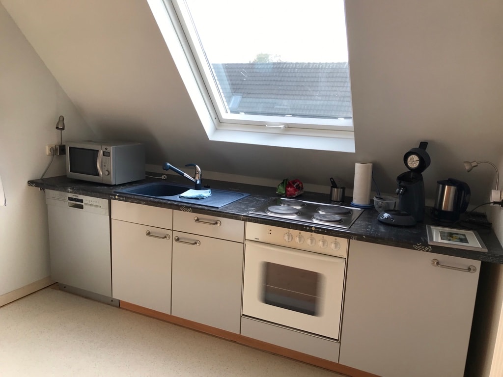 L'appartement se trouve au 1er étage et est accessible par un escalier extérieur. On y trouve également une petite terrasse qui peut être utilisée. Les murs intérieurs sont enduits d'argile, le sol est recouvert de planches. L'appartement est situé dans une rue calme. Les transports publics (bus et train) sont à proximité immédiate. Une liaison régulière vers Aix-la-Chapelle, Herzogenrath ou les Pays-Bas est à 10-15 min. à pied.
