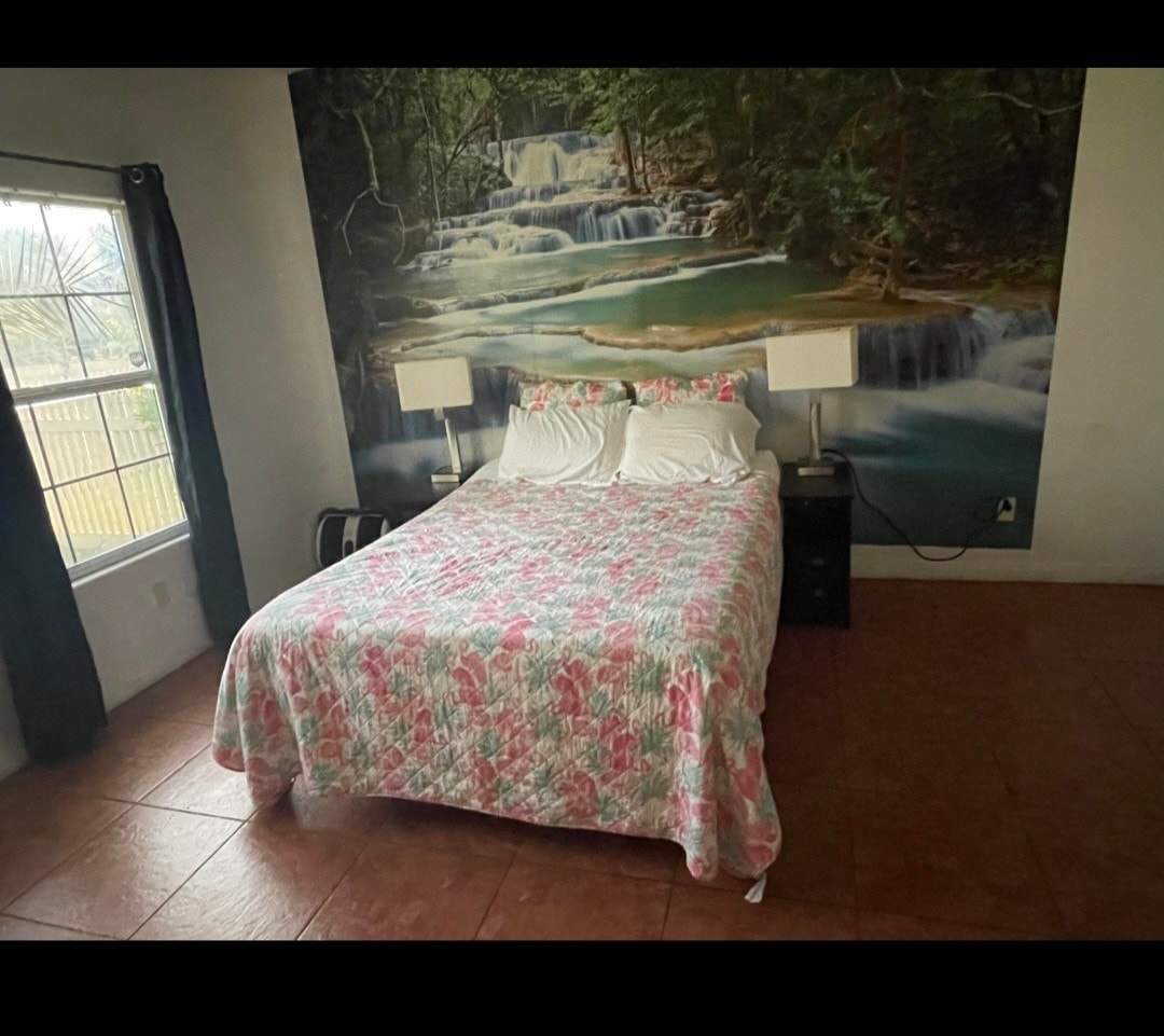 Confortable 2 chambres 1 salle de bain. Tout a été rénové, comme les armoires de cuisine, le carrelage, la moquette dans les deux chambres, la douche, la baignoire et la coiffeuse. 3 téléviseurs intelligents. 55" dans le séjour et 32" dans chaque chambre. Tous avec Netflix. Patio privé à l'extérieur avec barbecue au charbon de bois et beaux meubles de patio. Lave-linge et sèche-linge. Garage pour le stockage. Très propre et pittoresque.