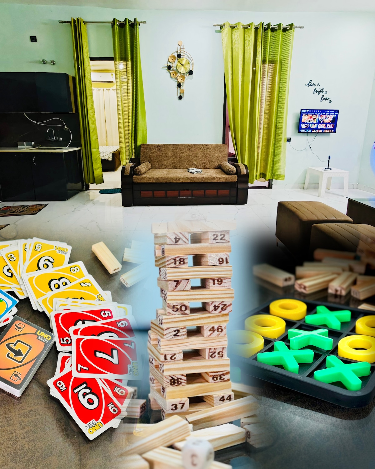 Découvrez notre élégant loft de deux étages à Dehradun ! Doté d'une chambre confortable et d'un canapé-lit, d'une connexion Wi-Fi gratuite, d'une climatisation, d'une télévision et de 2 salles de bains privées. Travaillez confortablement dans un poste de travail dédié dans un espace avec de hauts plafonds, de grandes fenêtres, un balcon privé et une terrasse. Découvrez une cuisine entièrement équipée avec un filet de loft accueillant et innovant, ainsi que des conforts essentiels tels qu'une trousse de premiers secours, un extincteur, un parking gratuit, une arrivée autonome transparente, des jeux de société, un sèche-cheveux, un fer à repasser et une chaise bébé.