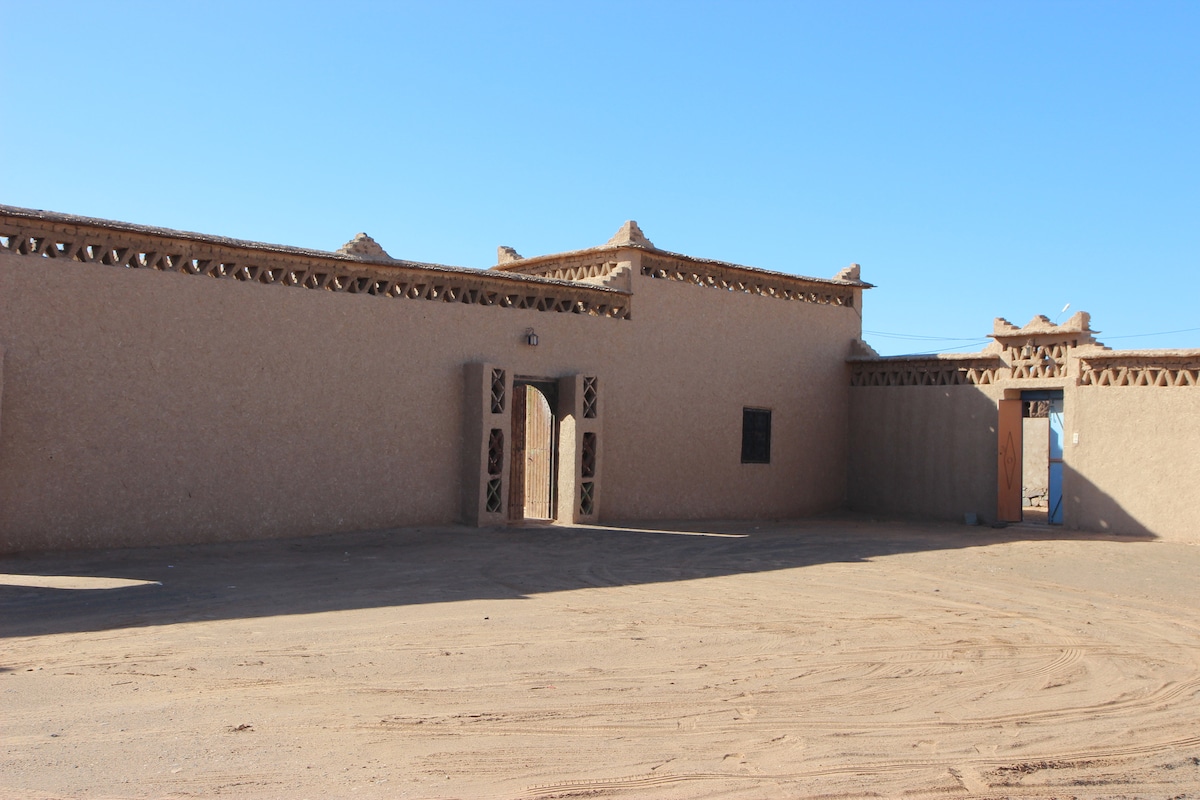 Bienvenue chez vous, là où ma famille était nomades d'origine. Nous avons construit cet appartement par nos mains avec amour et respectons notre patrimoine. Nous offrons une connexion Wi-Fi gratuite, un parking, un lave-linge, une SmartTv, notre hospitalité et plus encore. C'est la rue la plus propre avec des charmes à 3 minutes du centre de Merzouga. Une salle de pâtisserie se trouve autour du conner, où les femmes villageoises se réunissent pour faire du pain ensemble. Nous sommes situés entre le jardin et les dunes de sable entourées d'une nature paisible et pratique pour faire du shopping et manger.