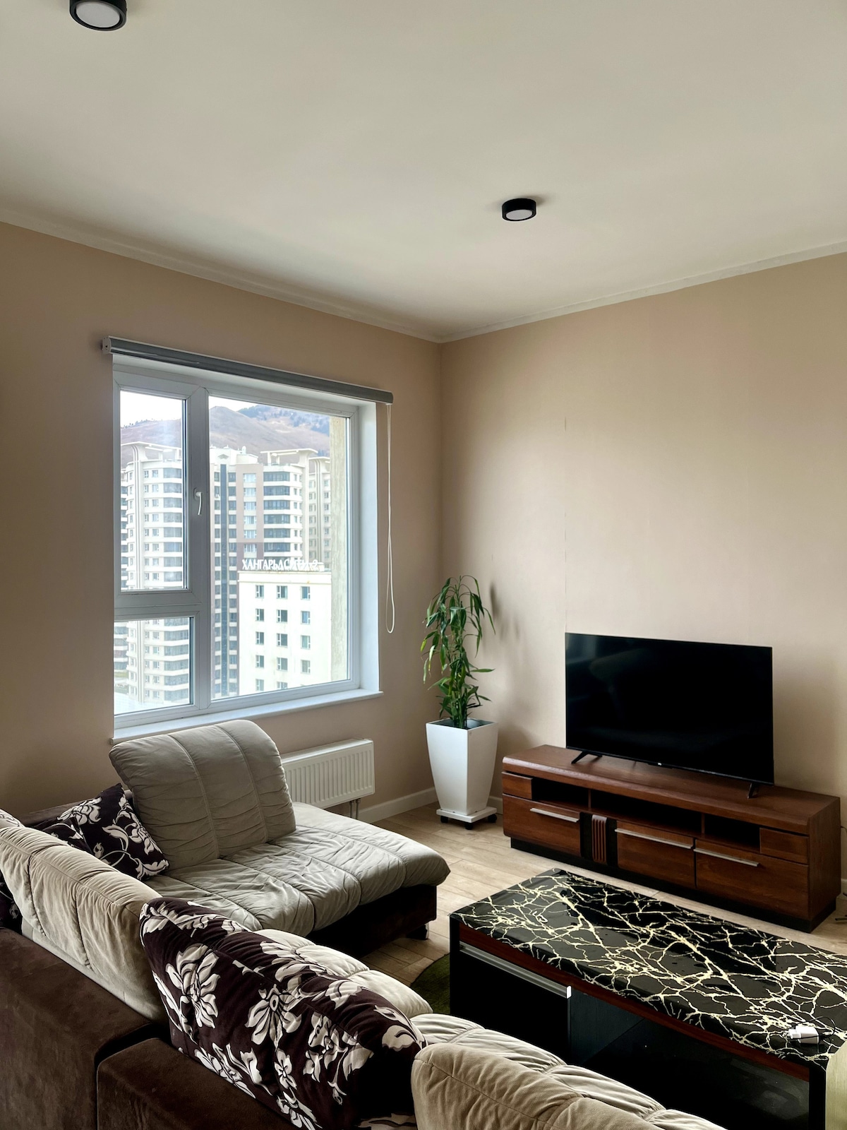 Extra clean and comfortable 1-bedroom condo in a quiet residential neighborhood near Central Stadium. Just a 10-minute walk to bus stops, supermarkets, malls, sports complex, and a 15-minute drive to Sukhbaatar Square. Located in a river valley area with better air quality in winter. Perfect for business travelers, couples, and tourists.