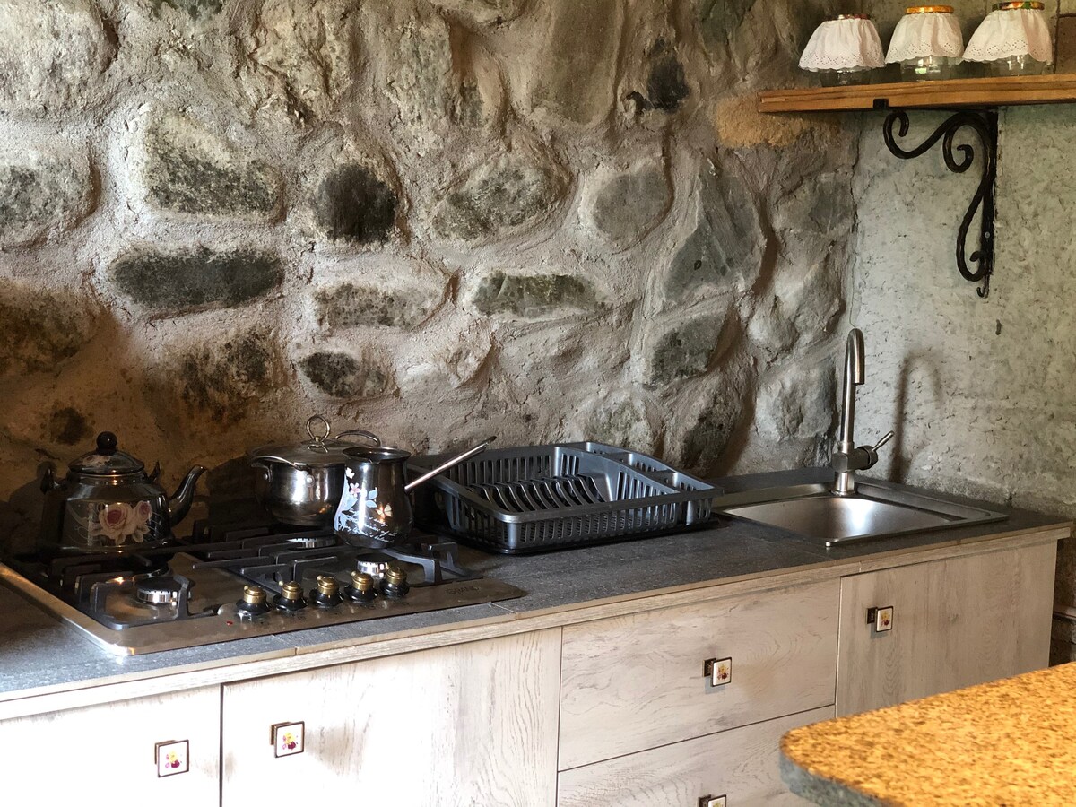 Détendez-vous en famille dans ce havre de paix. Chalet écologique à Khulo, idéal pour les familles ou les petits groupes. 6 couchages avec 2 chambres et un canapé-lit. Profitez de la vue sur la montagne, d'une cheminée confortable, d'une cour privée et de repas locaux frais. Ce qui rend ce logement spécial Environnement de montagne calme Un mode de vie confortable et respectueux de l’environnement L'hospitalité géorgienne authentique Idéal pour les couples, les amis ou les familles Réservez votre séjour et découvrez le charme de la Géorgie rurale ! Un accueil chaleureux à la géorgienne vous attend !