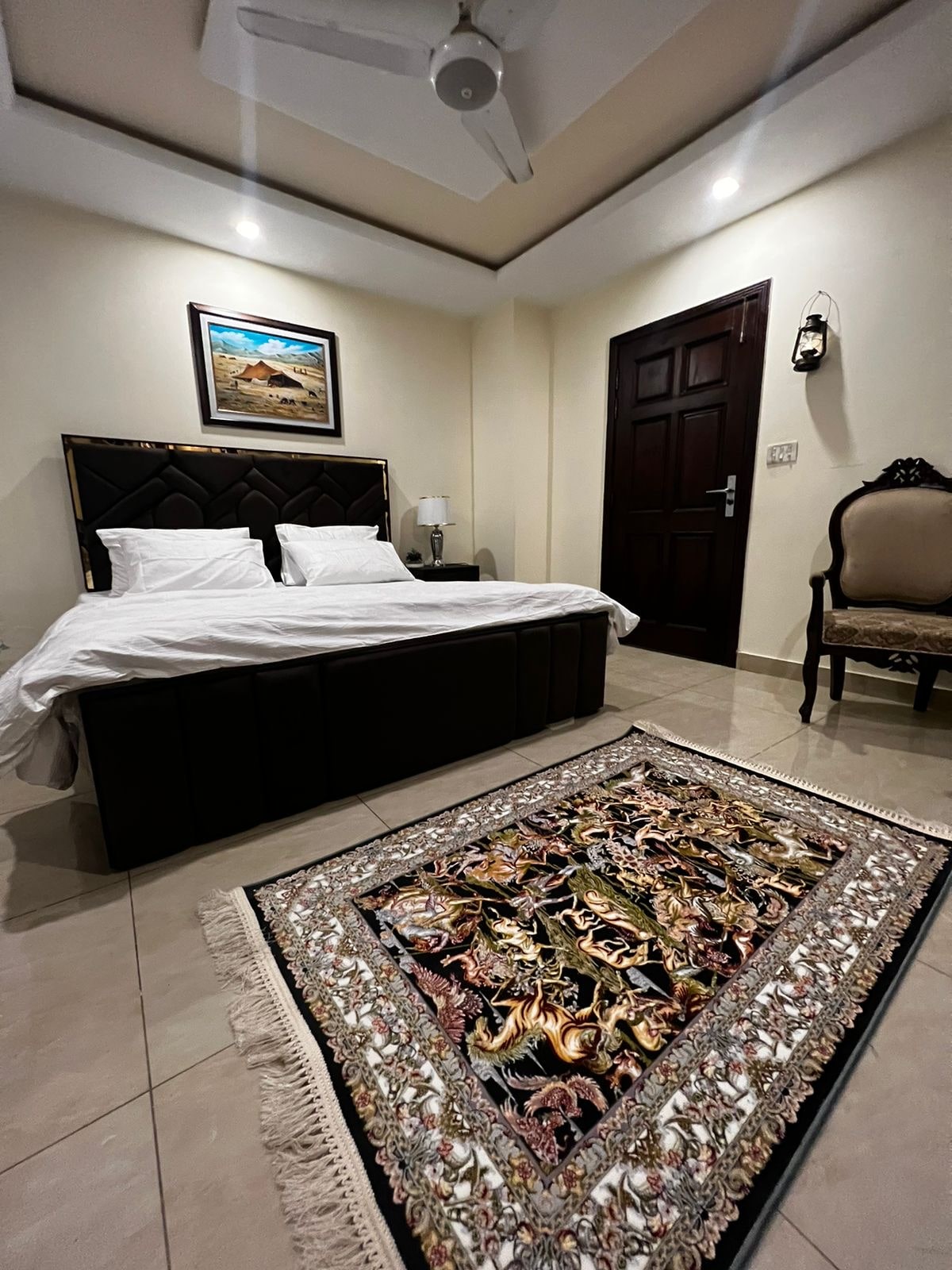 Bienvenue à @blueoakresidences Appartement spacieux de 1500 pieds carrés à F-11/1 Islamabad avec 2 chambres avec salle de bains privative, chacune avec un balcon privé, une salle de bain, une sauvegarde UPS, une connexion Wi-Fi rapide, un enregistrement automatique et une télévision intelligente de 58". Cuisine entièrement équipée, eau chaude, parking gratuit, ascenseur 24h/24 et 7j/7. Pour les groupes de plus de 4 personnes, nous fournissons 2 matelas de sol supplémentaires pour assurer un séjour confortable pour un maximum de 6 personnes. À quelques pas de Loafology, Nando's, Asian Wok, KFC, Al-Fatah. Parc familial juste à côté.