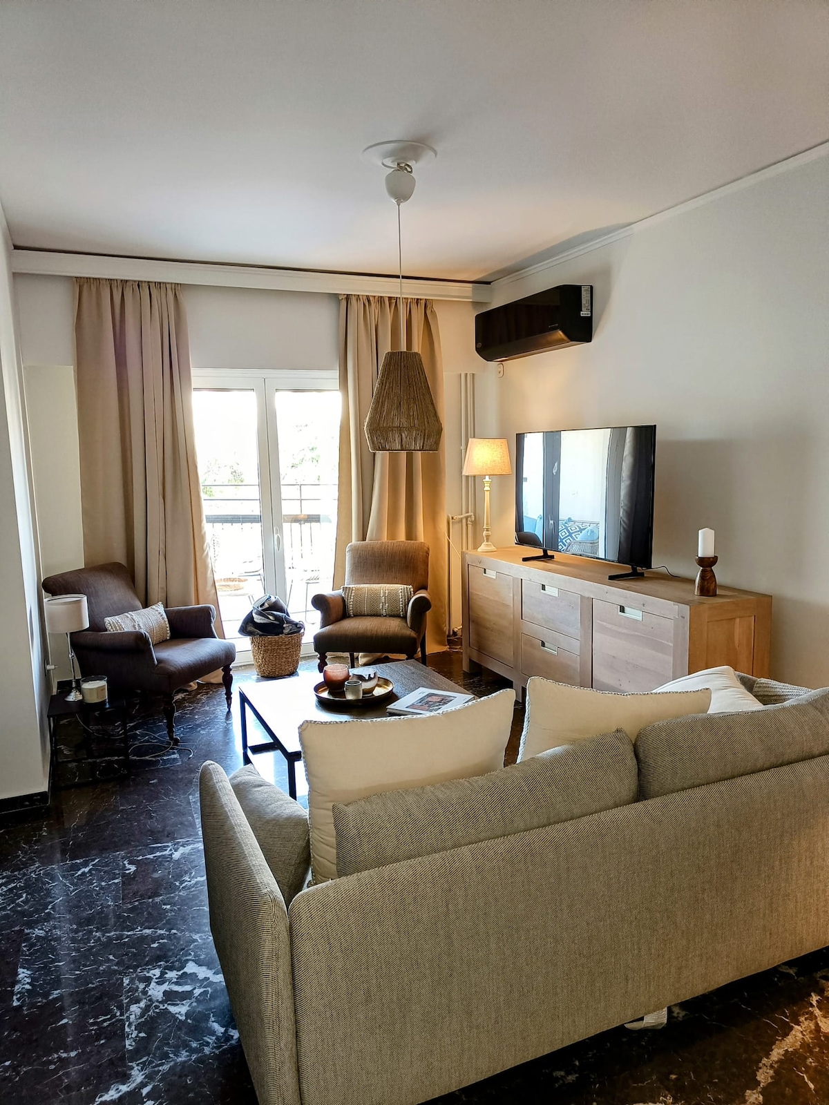Appartement aéré et ensoleillé, 55 m², au 1er étage, entièrement rénové pour offrir confort et tranquillité. Idéal pour un couple ou une petite famille jusqu'à 3 ou 4 personnes (1 lit double, 1 canapé-lit), il est situé dans un excellent emplacement, à 5 minutes de la gare et à 400 mètres du centre cosmopolite de Kifissia, avec ses boutiques, restaurants et cafés convoités. La cuisine entièrement équipée et les équipements modernes créent un espace accueillant, prêt à vous accueillir.