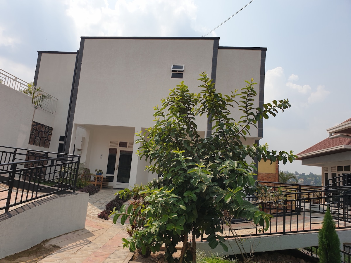 Il s'agit d'une maison moderne confortable et entièrement meublée, avec un salon ouvert et une cuisine bien équipée. Il dispose également de deux chambres king size et d'un futon avec une terrasse privée et une vue sur Kigali. Elle dispose d'une piscine et d'une salle de sport moderne. Les services publics comprennent une CONNEXION WI-FI par fibre optique, une télévision, une machine à laver (laveuse et sécheuse), une sécurité 24h/24 et un garage privé. Il est interdit d'apporter des animaux de compagnie et de fumer Des séjours longue durée sont disponibles et peuvent être discutés.