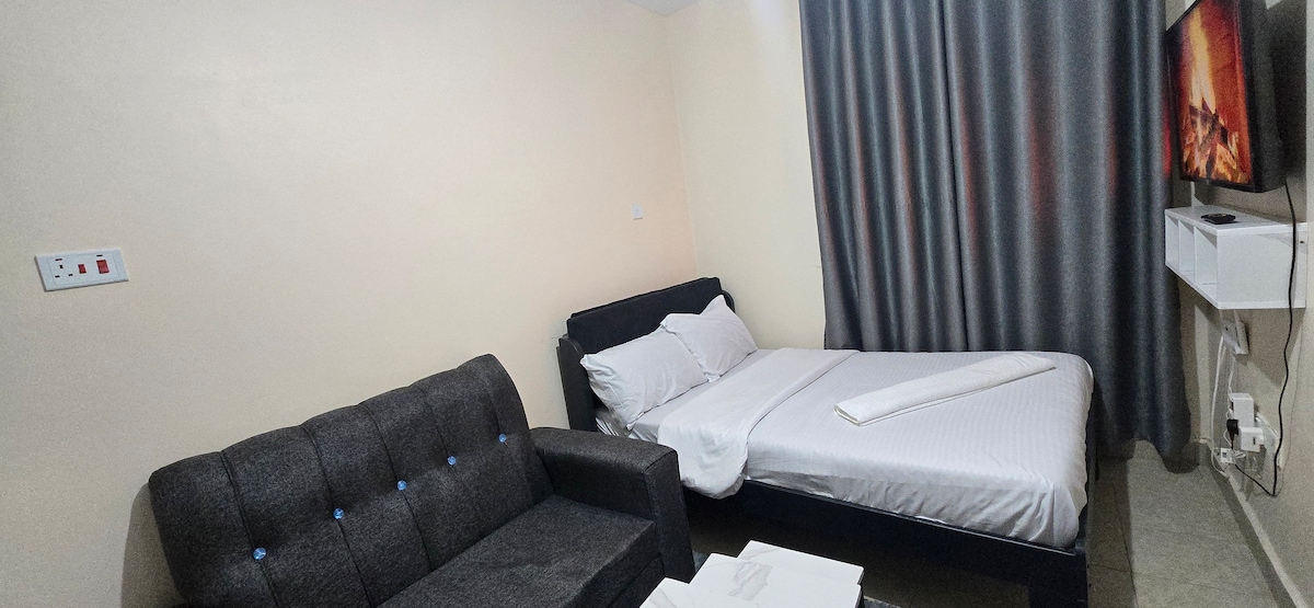 Elegant and super clean. Keep it simple at this peaceful and centrally-located place within Machakos town. You would easily find conference facilities,supermarket, eateries,hospital, pharmacy. Above all this you are guaranteed exciting and convenience to other amenities you may need including swimming pool and gym in the nearby hotel. parking is allowed inside the building only during night time