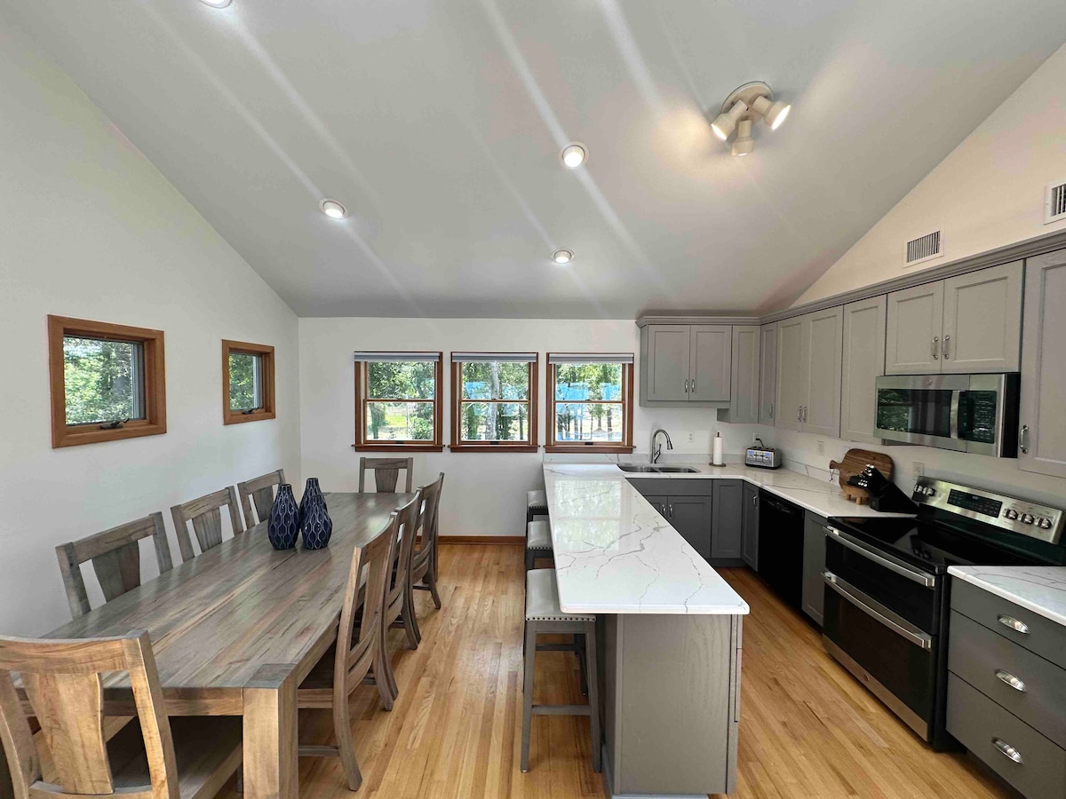 Profitez d'un séjour relaxant dans notre maison de style ranch de plain-pied joliment décorée. Avec des finitions élégantes et luxueuses, cette maison de deux chambres et deux salles de bains est l'endroit idéal pour un séjour au cœur de Kill Devil Hills, située à moins d'un mile de l'océan et à proximité de certains des meilleurs restaurants et magasins locaux de la région. À ✓ 5 min en voiture du Wright Brothers National Memorial À ✓ 3 min en voiture de la réserve de Nags Head Woods À ✓ 6 min en voiture du parc d'État de Jockey's Ridge Nous avons hâte de vous accueillir !