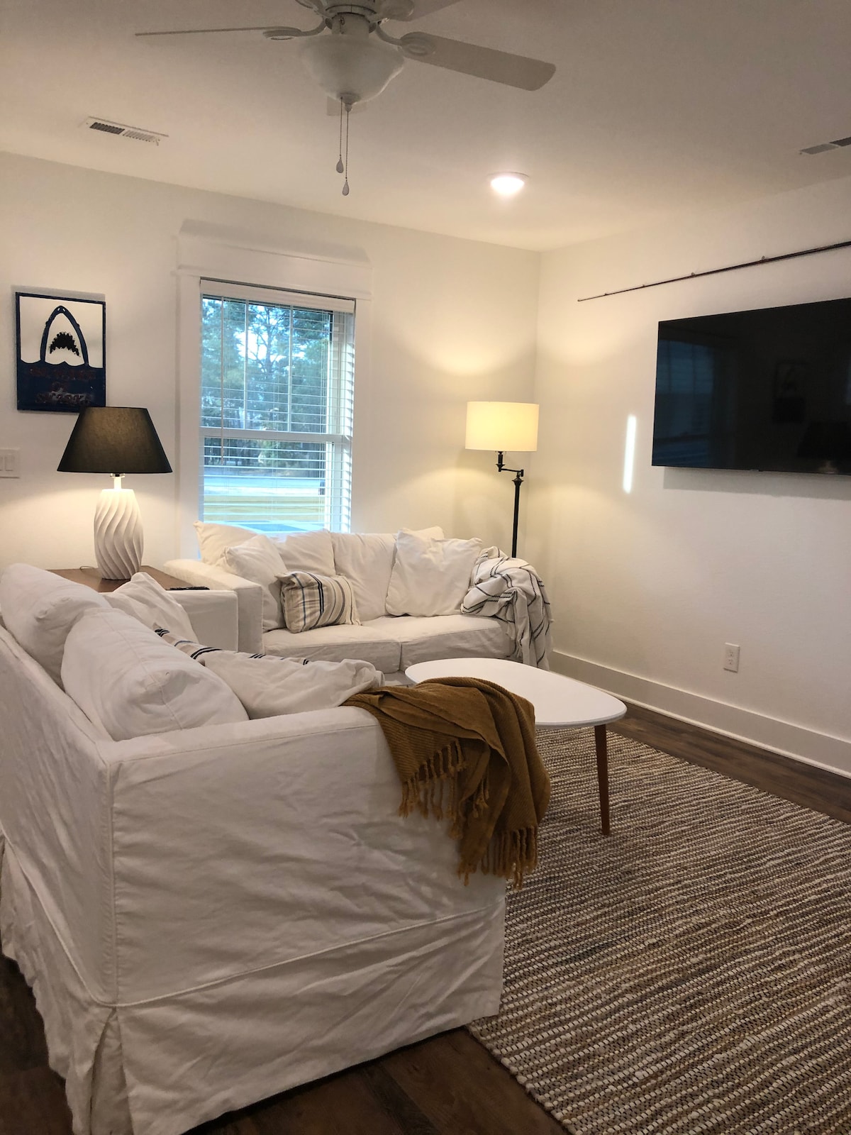 Appartement d'un chambre au premier étage avec espace de vie et entrée privée dans une maison moderne à seulement 0,3 mile de la baie et à 2 minutes en voiture de la plage. Idéalement situé à Kill Devil Hills dans une rue résidentielle calme. Admirez le coucher de soleil depuis la célèbre Bay Drive ou faites du vélo ou marchez le long du sentier polyvalent au bord de l'eau. Les propriétaires vivent au dernier étage avec deux enfants d'âge scolaire. Nous sommes une famille amicale et active qui cherche à rendre votre séjour sur les Outer Banks aussi agréable que possible.