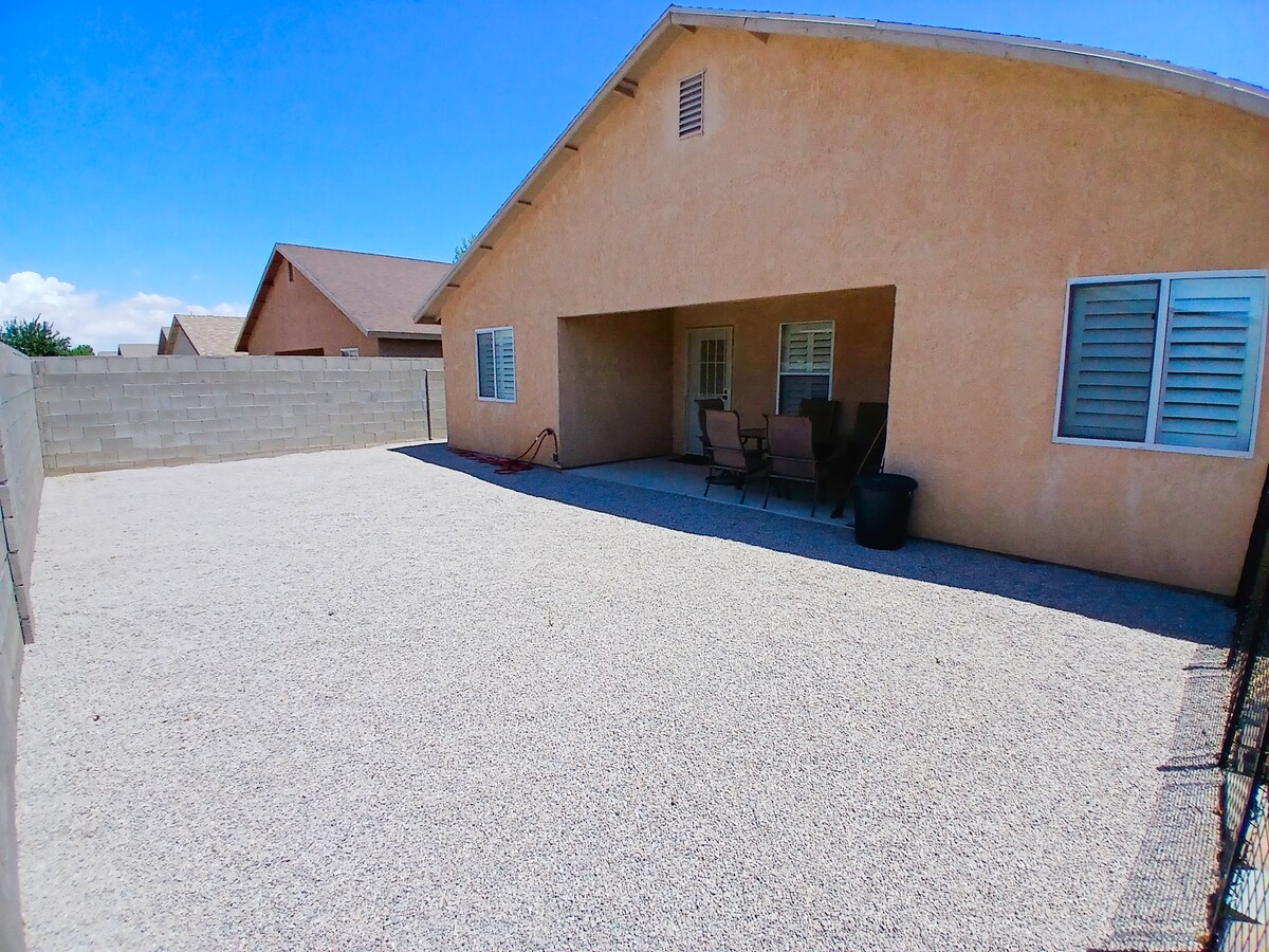 NOUVEAU ! ! ! ANIMAUX ACCEPTÉS ! ! Cette maison de 1 chambre 1 salle de bain peut accueillir 4 personnes et se trouve dans un emplacement idéal à seulement quelques minutes du centre médical régional, I40, Route 66 et historique du centre-ville de Kingman. La maison est également très proche de nombreux restaurants populaires, d'un terrain de golf local et même de Starbucks. Ce qui sépare cette maison des autres dans la région, c'est que vous avez votre propre cour, une course de chiens, un lave-linge et un sèche-linge et tous les ustensiles de nourriture et de boisson ainsi qu'un réfrigérateur de grande taille. Barbecue extérieur au gaz, télévision connectée, etc.