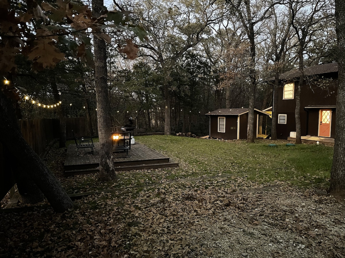 Échappez à la vie urbaine dans ce petit coin de paradis. Profitez de la nature dans cette oasis. Nous avons 25 acres de forêt, deux étangs et d'incroyables sentiers de randonnée. Capacité d'accueil de 3 personnes. Avec une kitchenette et une douche à effet pluie. Toute la literie est fournie. Une télévision avec 200 chaînes, un réfrigérateur, un micro-ondes et une cafetière pour votre confort. Rassemblez-vous autour du foyer et du gril. Ensuite, sirotez un café sur la terrasse arrière le matin. Texoma offre une excellente pêche, du canotage et de la baignade. Vous vous sentez chanceux ? Visitez les casinos ! J'ai hâte de vous voir !