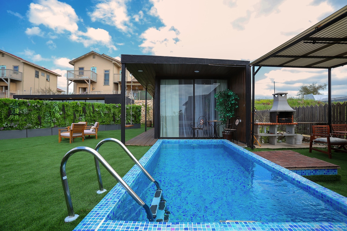 A luxurious wooden cabin in a beautiful resort complex in Tiberias, within walking distance of the promenade and the Sea of Galilee, that offers its guests a large, heated swimming pool, a large spa jacuzzi, a sauna, a gas barbecue area, a variety of outdoor seating areas and a large dining room with a kitchen. The cabin has a double bed, a double sofa bed, a jacuzzi in the room, a kitchenette and a bathroom. Suitable for 4 guests.