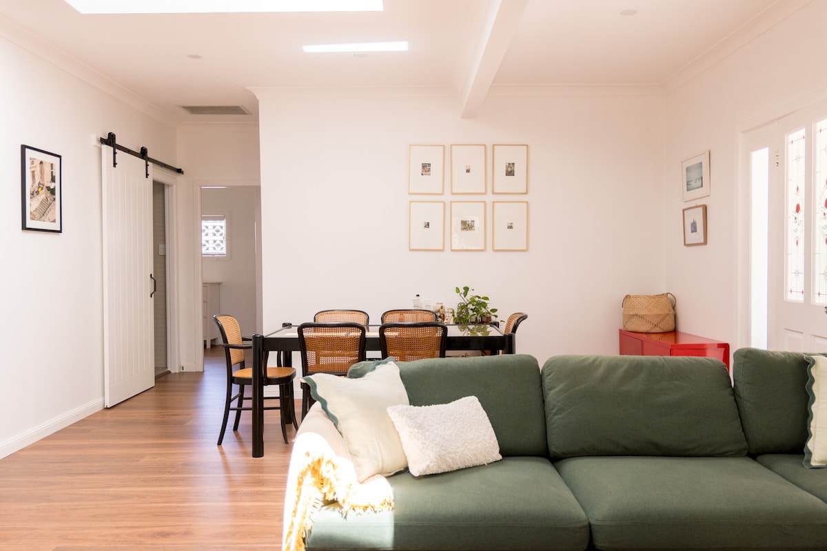 Bienvenue dans votre escapade privée. Vous serez ravis par l'environnement confortable, agréable et calme de notre maison climatisée d'une chambre. Vous apprécierez la cuisine entièrement équipée, les jardins matures, la pergola extérieure et le barbecue ainsi que le spa chauffé dont vous pourrez profiter toute l'année. Après une nuit reposante dans le lit Queen Size confortable avec du linge de luxe, vous pourrez rester et vous détendre ou explorer plus loin. Les 5 minutes à pied de la gare, des cafés, des restaurants et des commerces en font un jeu d'enfant.