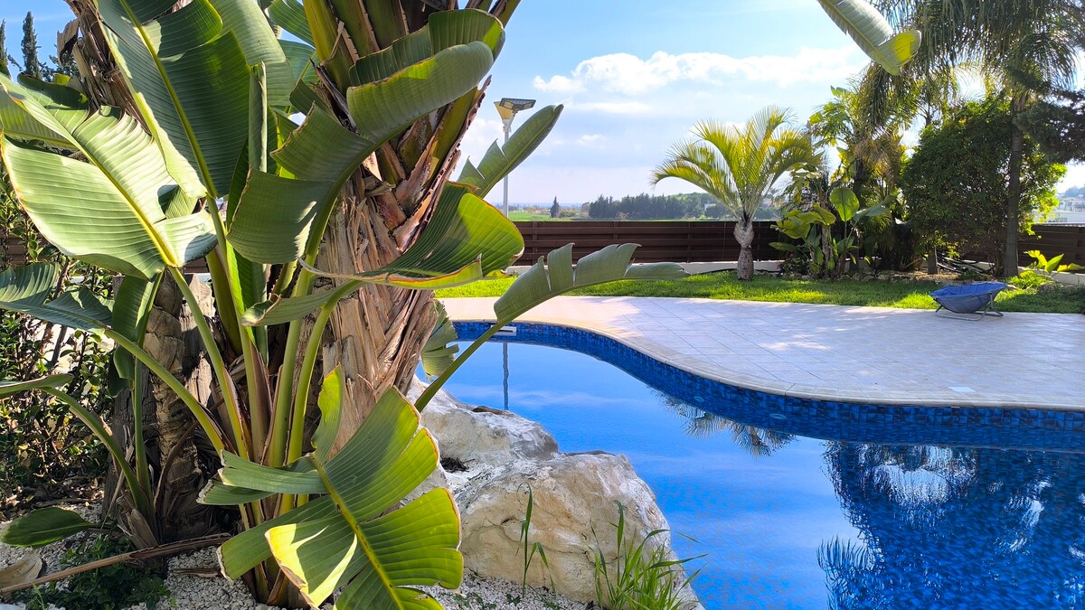 La maison est très lumineuse, spacieuse et confortable. Il est situé dans un village côtier calme, à 15 km du centre de Larnaca et très proche de la plage. La place du village est à 1 300 mètres et dispose de restaurants, supermarchés, pharmacie, etc. La maison dispose également d'un beau jardin avec vue sur la campagne et la mer.