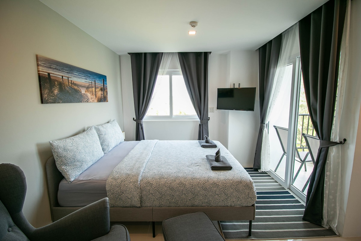 Notre appartement aéré de 3 chambres en bord de mer peut accueillir confortablement jusqu'à 4 adultes et 2 enfants. Il est entièrement climatisé et offre une vue sur le jardin luxuriant et l'océan. Profitez de l'auto-restauration, ou marchez jusqu'aux restaurants à proximité pour la cuisine thaïlandaise, fusion ou internationale.